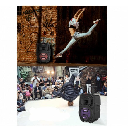 Boxa portabila trolller elSales ELS-ZQS-6111 cu microfon pentru karaoke, cu un design elegant, modern este ideala pentru petreceri,vacante,drumetii si multe altele.