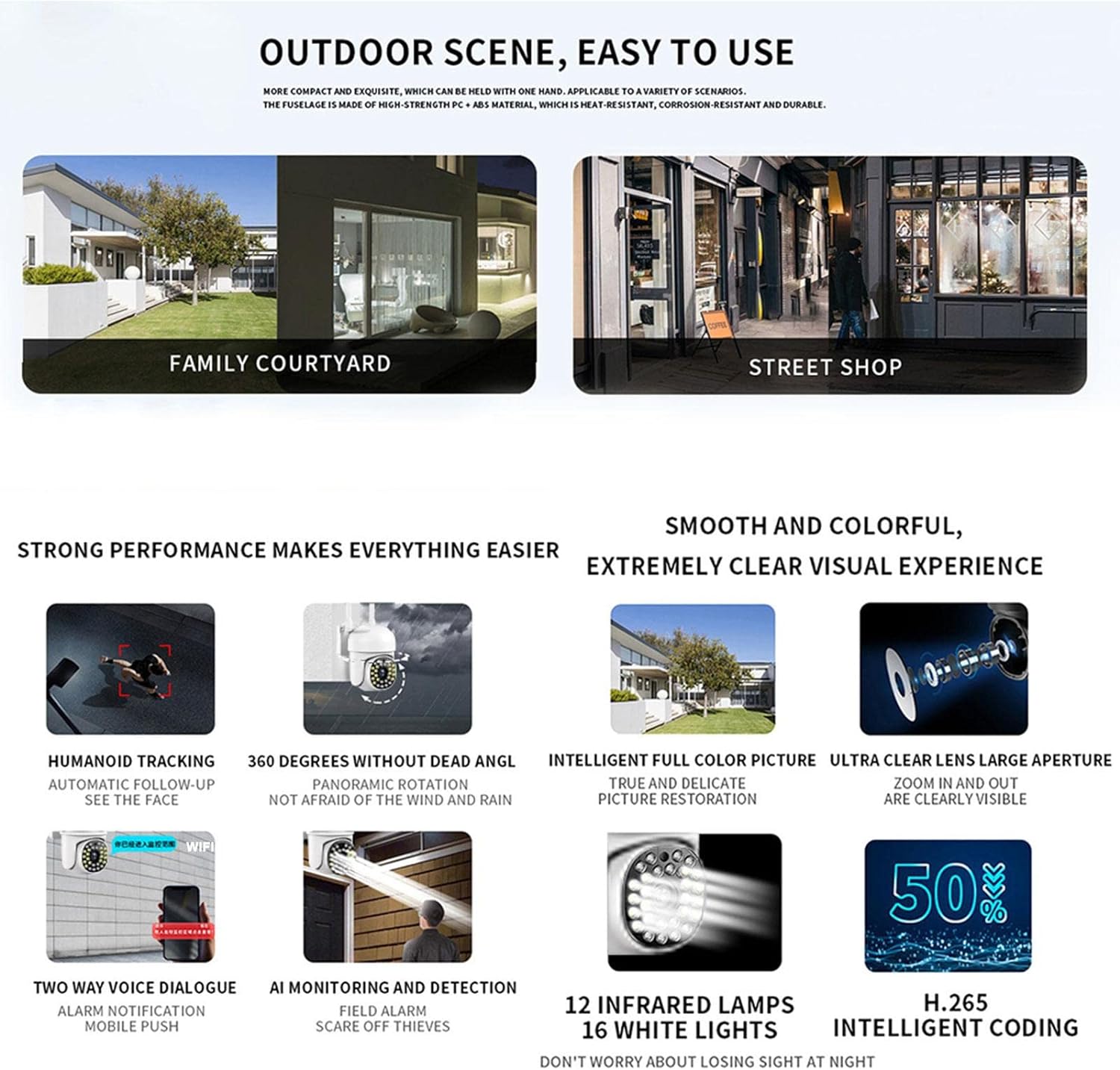 - Day-night switch mode : Infrared night vision, manual full color, intelligent full color night vision