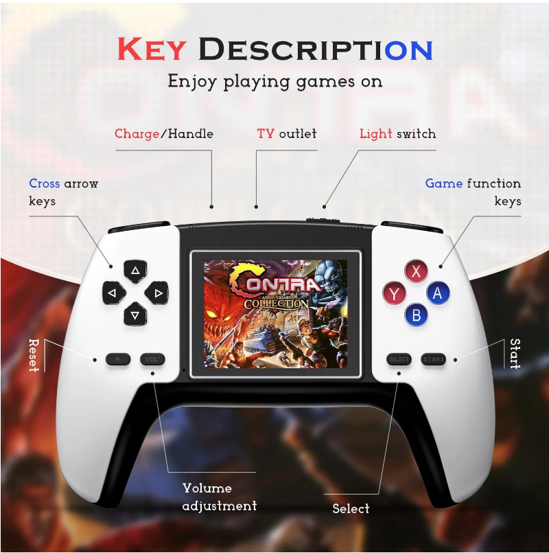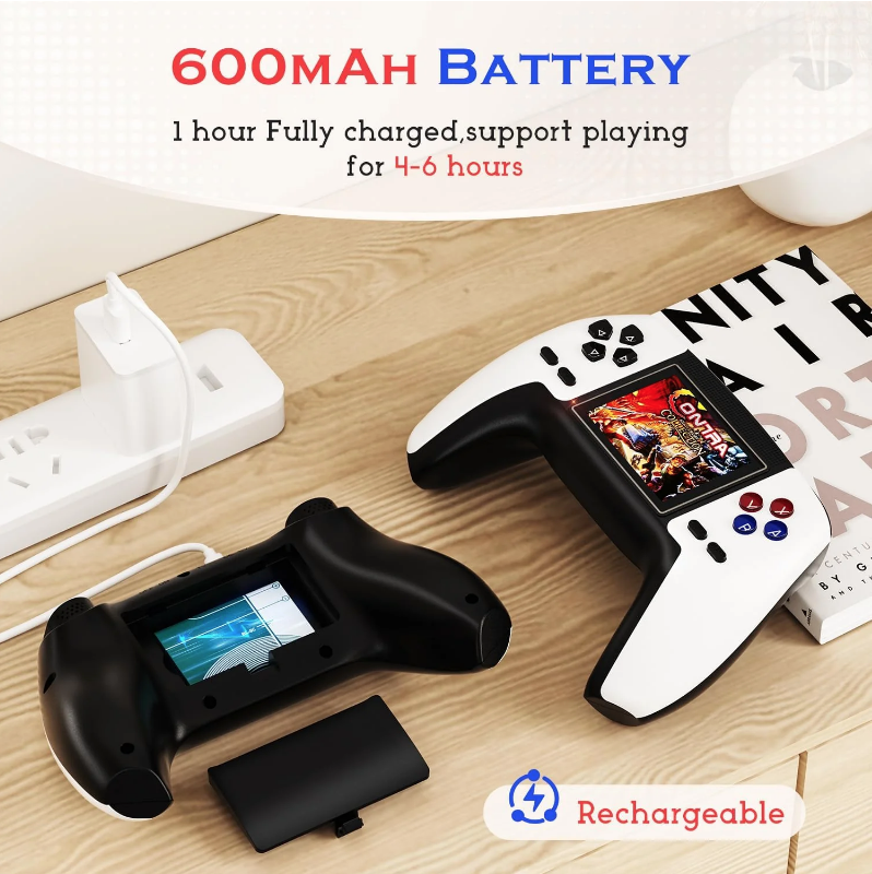 【Convenienta la reincarcare] Acest joc retro este echipat cu o baterie reincarcabila incorporata din litiu, oferind o durata de viata a bateriei de 4-6 ore.
