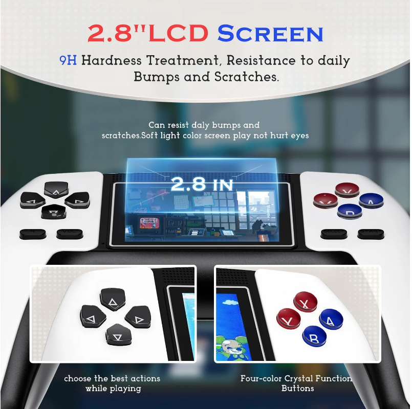 【Design prietenos utilizatorului】Fie ca este vorba de dimensiunea ecranului sau de dispunerea butoanelor si dimensiunile acestora, aceasta consola de jocuri prioritizeaza portabilitatea si practicitatea pentru copii. Scopul nostru este de a oferi o experienta de joc confortabila si placuta pentru copii.