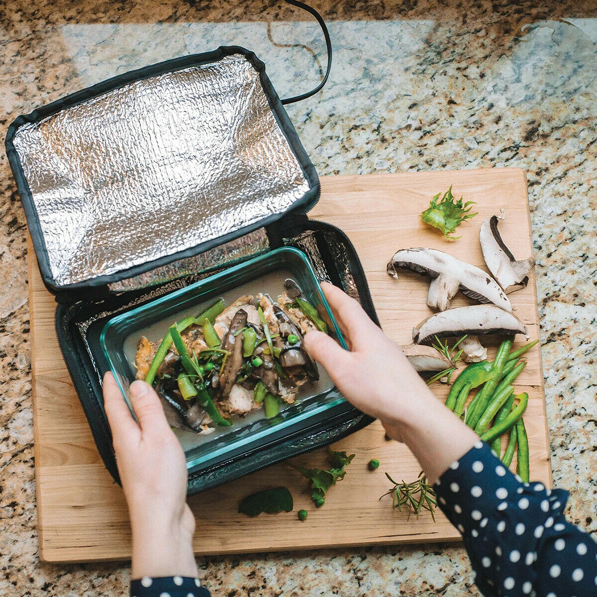Plasati mancarea in geanta - Alegeti masa dvs. proaspata sau pregatita din frigider sau congelator.