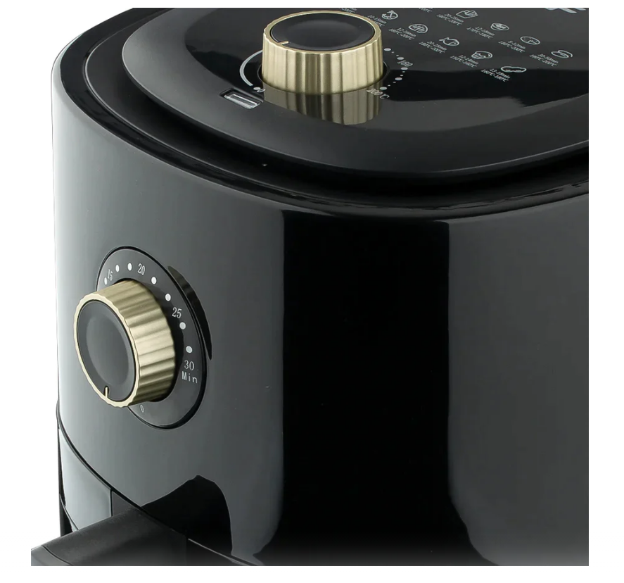 Design Modern și Elegant: Friteuza are un design elegant, de culoare neagră, ce se potrivește perfect în orice bucătărie. Compactă și stilată, adaugă un plus de rafinament spațiului tău de gătit.