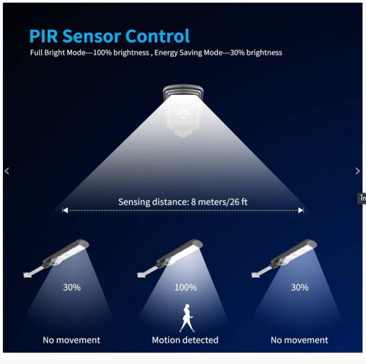 - pe modul radar intensitatea luminii se reduce la 30% in lipsa miscarii cu revenire la intensitate maxima in momentul miscarii;