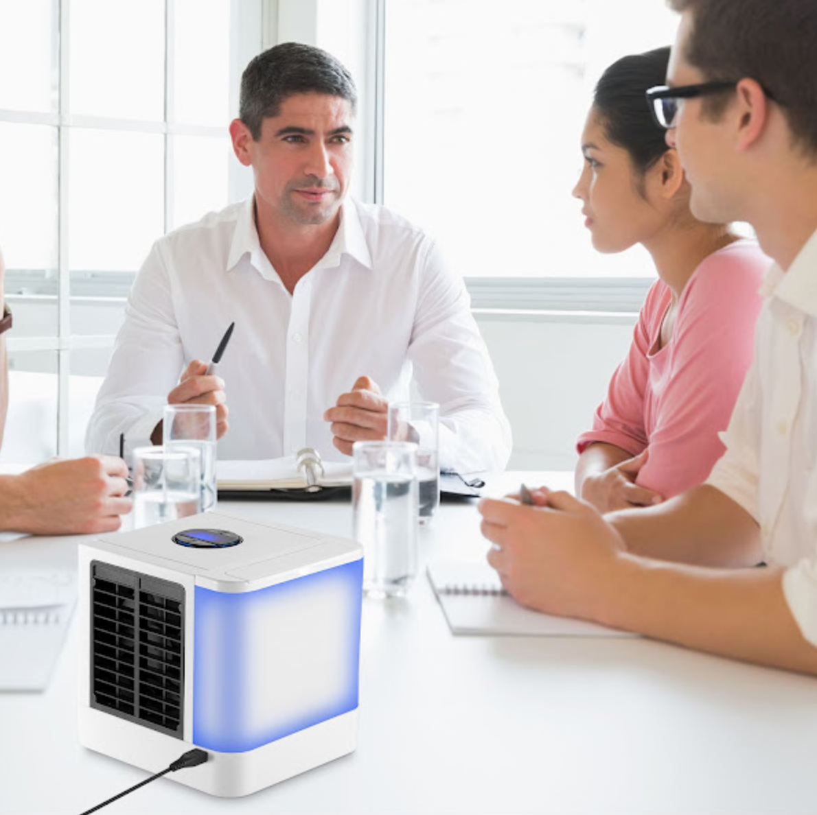 Utilizarea este extrem de simpla, ocupa foarte putin spatiu, astfel nu trebuie montat si este usor de mutat si transportat, tot ce trebuie sa faceti va fi doar umpleti rezervorul cu apa, apasati butonul si indreptati racitorul in directia in care doriti sa sufle. Lumina incorporata serveste in intuneric ca o lumina de veghe pe timpul noptii.