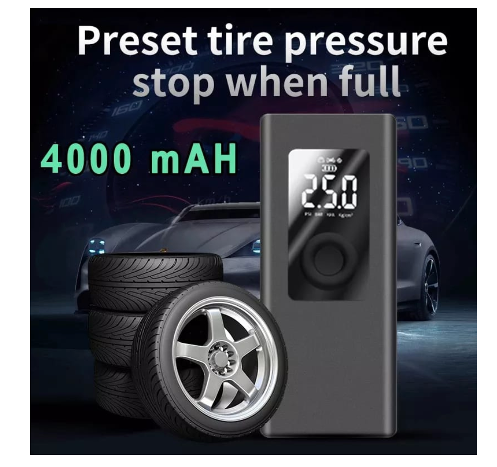 Produs multifunctional Compresor de aer fara fir si tester de presiune care poate fi folosit ca powerbank si lanterna LED. Acesta este un produs inovator care poate fi utilizat intr-o gama larga de aplicatii. Echipat cu un motor puternic cu o presiune de lucru de 150 PSI, poate fi folosit pentru a umfla anvelopele auto, anvelopele bicicletei, mingile si orice altceva in casa ta.