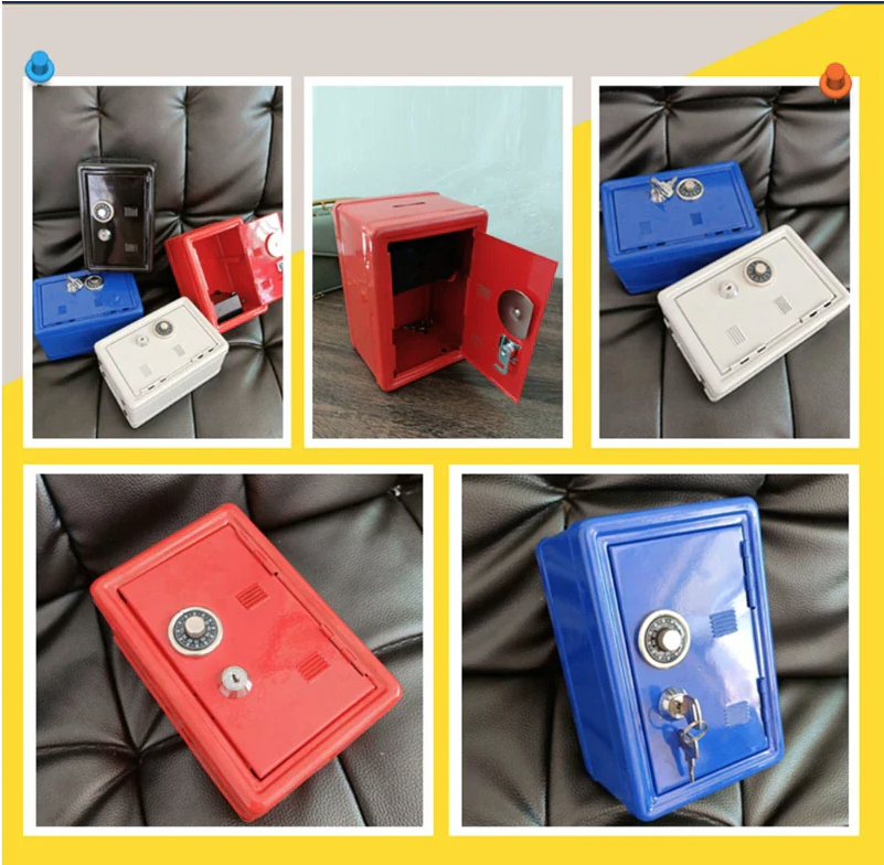Ce cadou poate fi mai potrivit pentru economisirea banilor decat o pusculita metalica in forma de seif? Pusculita seif are un compartiment pentru pastrarea bijuteriilor si bunurilor de valoare si un compartiment pentru bani. Aceasta, este prevazuta cu inchizatoare pe baza de cheie si cu un cifru.