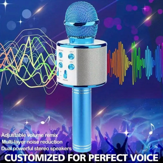 Microfon wireless pentru Karaoke cu Bluetooth si difuzor dispune de multiple setari de sunet si efecte de voce pentru karaoke, se poate canta peste melodiile preferate, acesta vine cu acumulator incorporat reincarcabil.