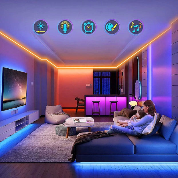 Banda LED RGB multicolor cu telecomanda 5 M, alimentare la priza