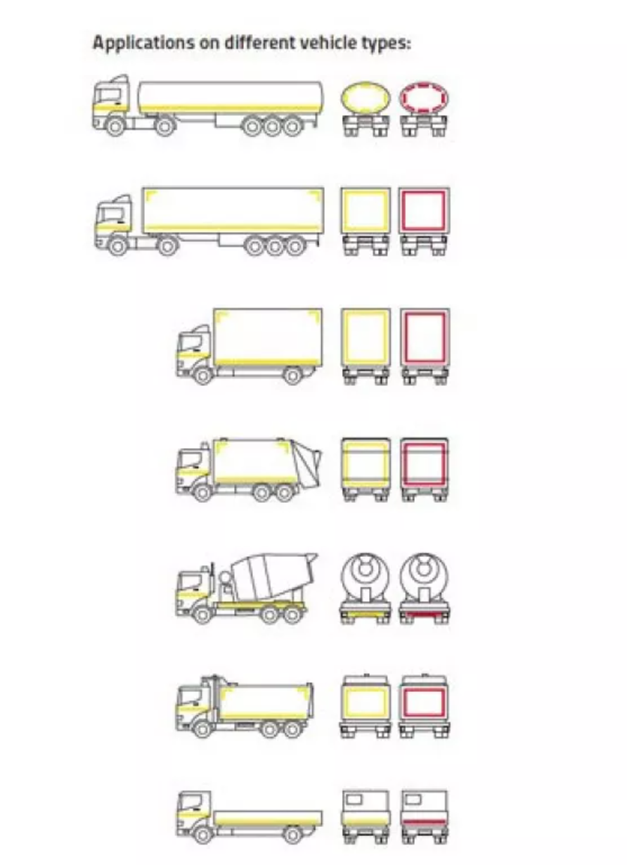 Aceasta banda reflectorizanta este special conceputa pentru conturul camioanelor si semiremorcilor. Banda se amplaseaza pe spatele si lateralele acestora cu scopul de a imbunatati vizibilitatea si de a scadea riscul accidentelor rutiere.
