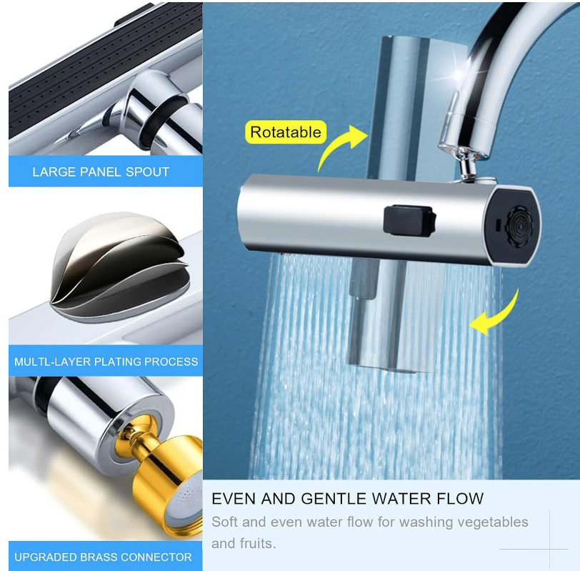 Rotire 360°: Robinetul nostru extensibil poate fi usor rotit la unghiul dorit, astfel încât sa puteti curata cu usurinta fructe, legume, vase si alte ustensile de bucatarie pentru a obtine un efect de curatare complet.