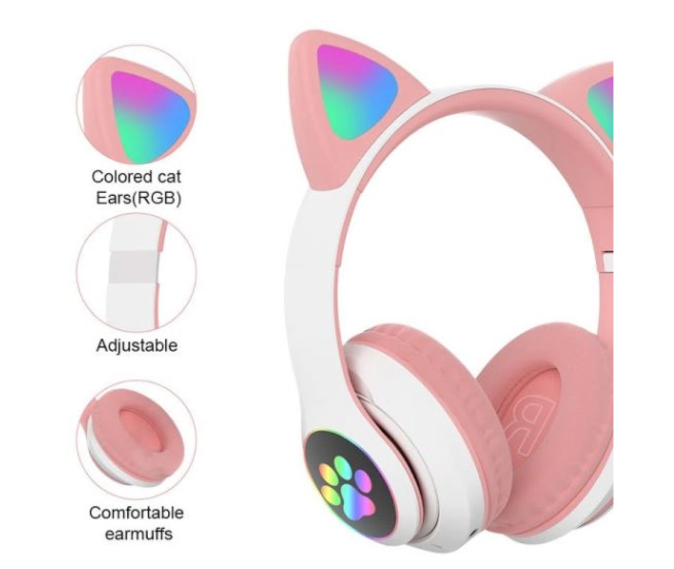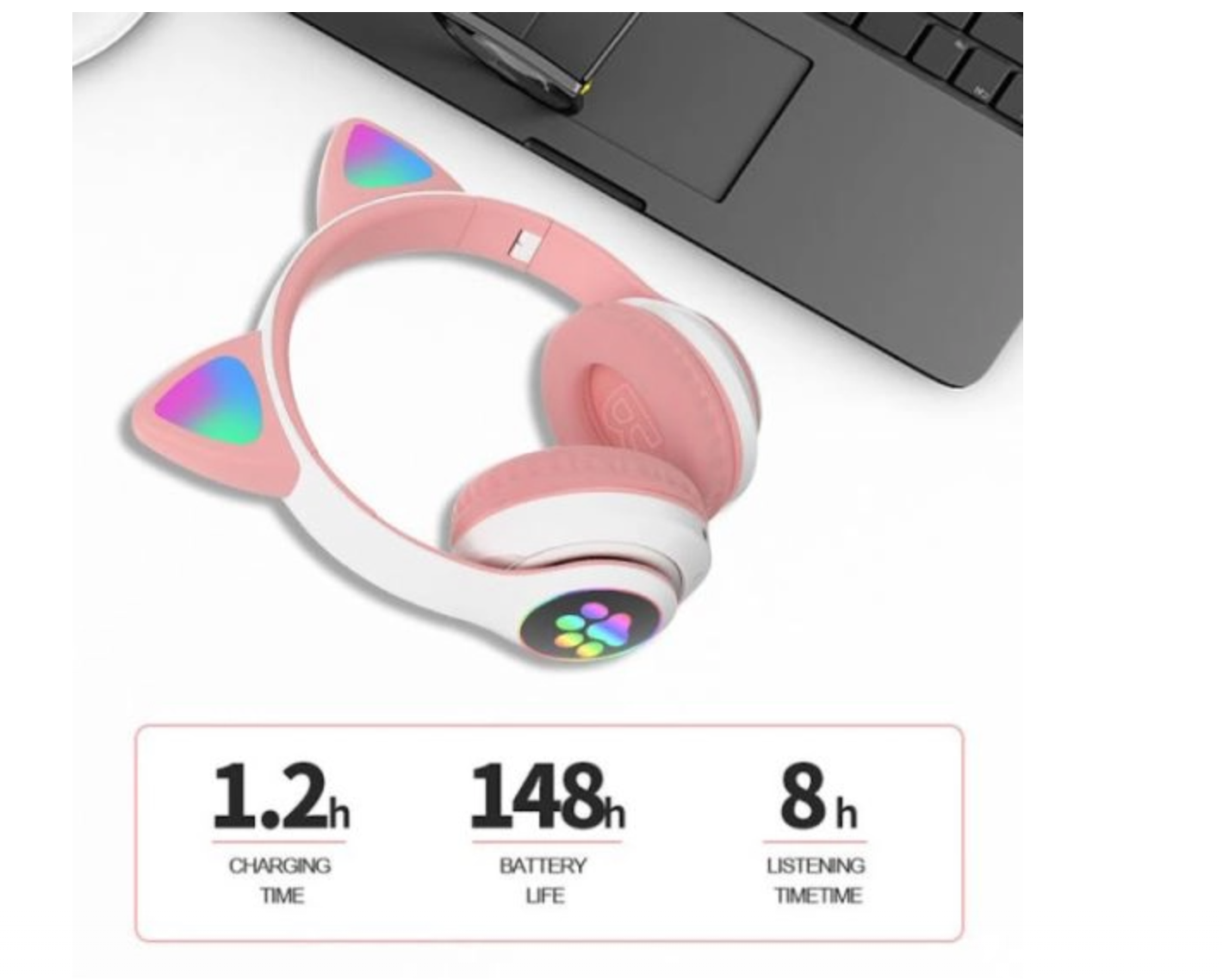 Casti audio Wireless, urechi de pisica, iluminare LED, Stereo