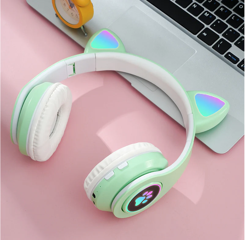 **Casti wireless pliabile cu urechi de pisica iluminate LED, Bluetooth 5.0, Bass Stereo