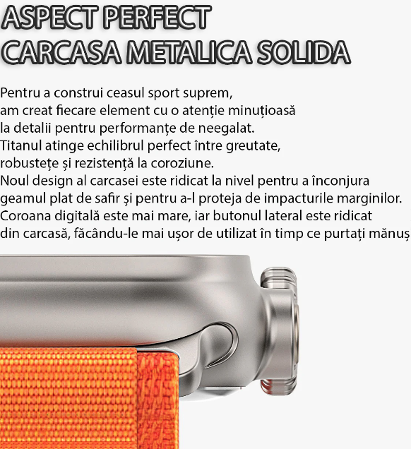 Carcasa ceasului este din aluminiu, iar curea este fabricata din silicon placut la atingere si rezistent.