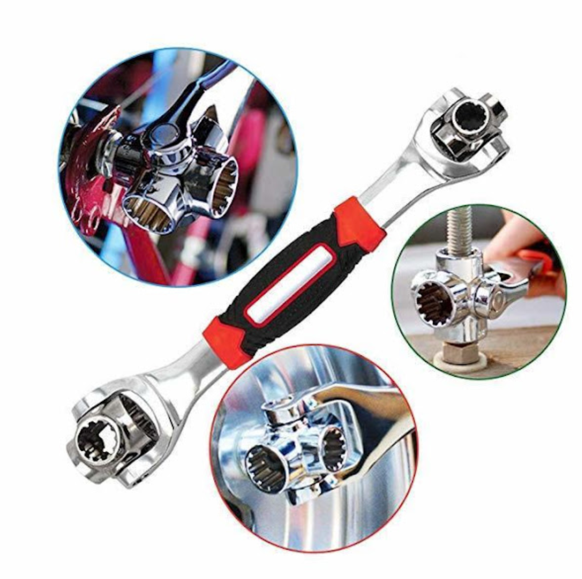 Cheia dinamica pentru unelte Universal Tool 48 in 1 este un nou instrument inovator care combina puterea celorlalte 48 de unelte, toate intr-unul singur. Cu aceasta cheie de priza, veti putea sa abordati zeci de proiecte in jurul casei, pe sosea, in garaj sau chiar la locul de munca.