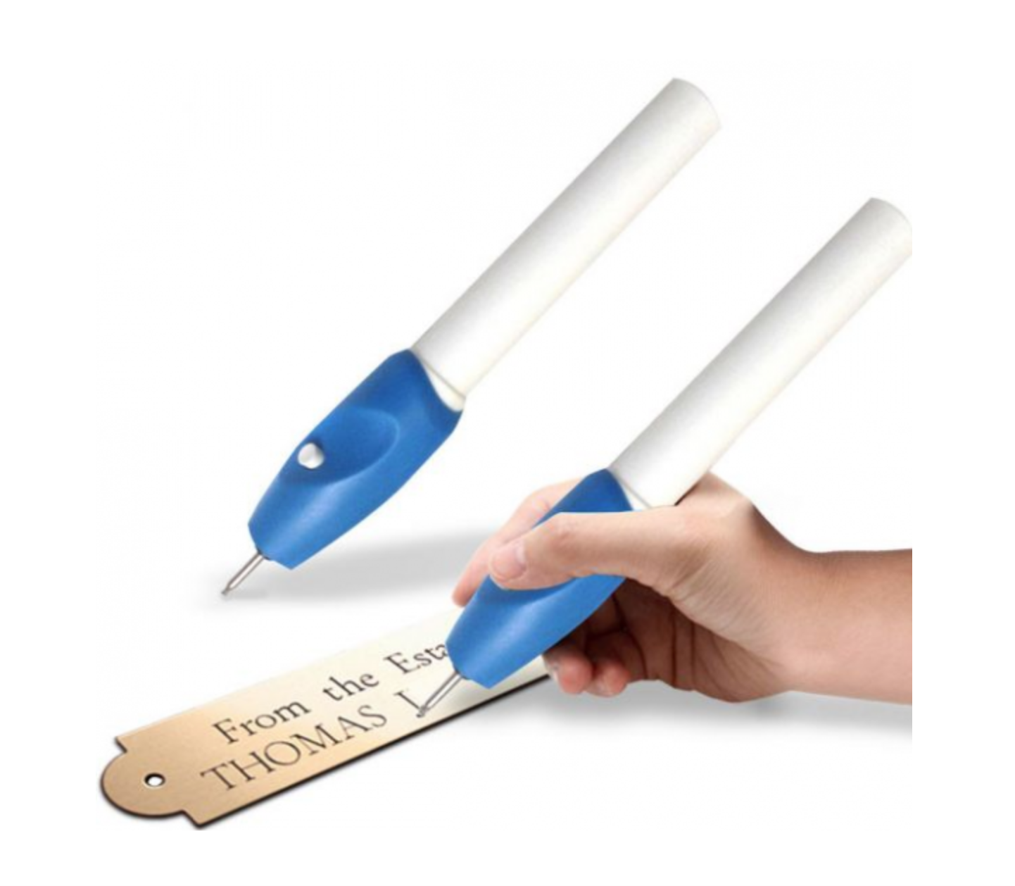 Cu acest creion pentru gravat, veti fi capabil sa faceti gravuri originale, creative, pe multe produse si suprafete. Aparatul pentru gravat va va permite sa identificati si sa personalizati numeroase articole in functie de preferinta dumneavoastra. Datorita acestui aparat de gravat, nu va mai fi nevoie sa mergeti la la magazine specializate in gravat, din moment ce veti fi capabil sa faceti singuri acest lucru. Veti economisi timp si bani. Creionul de gravat masoara 18 cm si graveaza pe sticla, plastic, lemn, metal si alte obiecte.