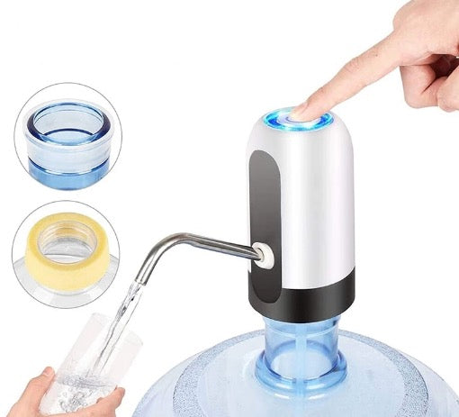 Bidoanele mari de apa sunt greu de folosit de catre copii, batrani si chiar de persoanele in putere, pompa electrica va scapa de ridicat bidoanele grele cu apa. Functioneaza cu acumulatori si se reincarca prin cablul USB cu care vine dotata, este usor de montat si de utilizat pentru o mare varietate de recipiente. Aveti apa la o singura apasare de buton.