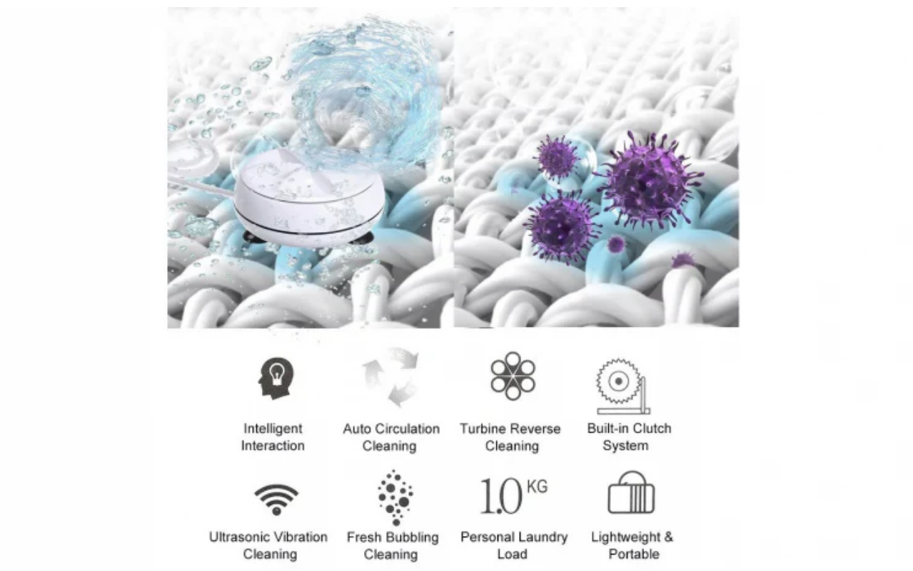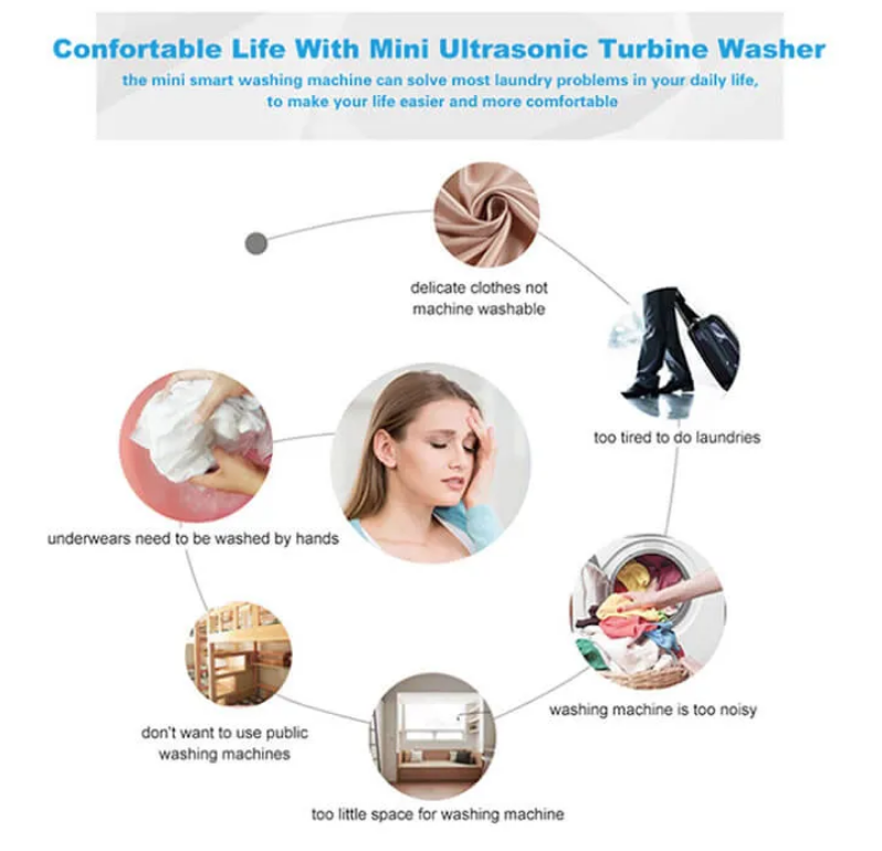 Portabila si usoara: masina de spalat portabila are un diametru de 9 cm si o greutate de 310 grame, care poate fi luata cu dvs. atunci cand calatoriti sau calatorii de afaceri pentru a va facilita spalarea rufelor.