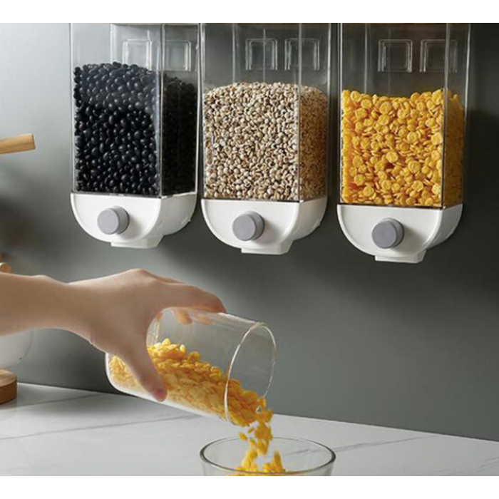 Un dozator practic și la îndemână pentru bucătărie, care servește și ca o cutie pentru depozitarea alimentelor. Cu un singur clic, puteți distribui cu ușurință și rapid alimentele dorite – orez, paste, linte, fasole, cereale .. Datorită transparenței cutiei, aveți o imagine de ansamblu a ceea ce se termină deja și a ceea ce trebuie să cumpărați.