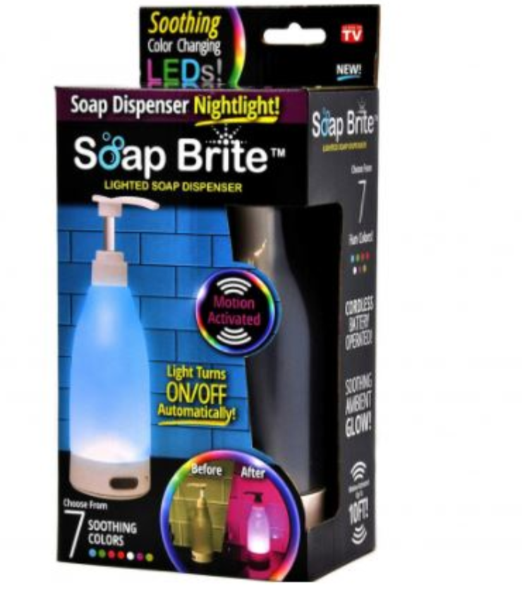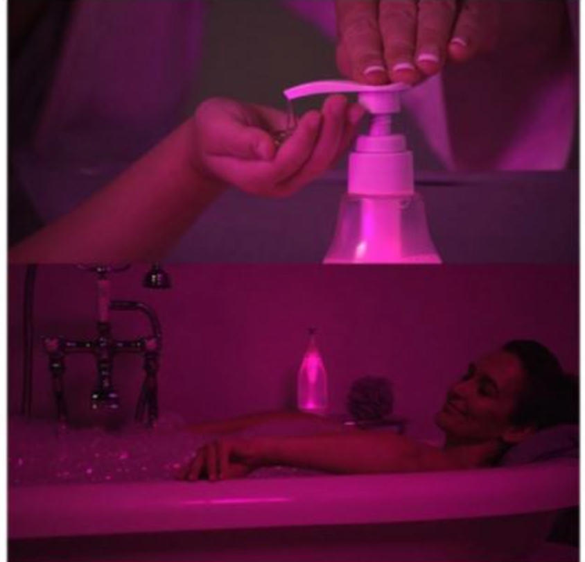 Soap Brite poate fi usor umplut, sampon, balsam sau dezinfectant pentru maini care actioneaza apoi ca difuzor de lumina, raspandind lumina calda si relaxanta in camera.