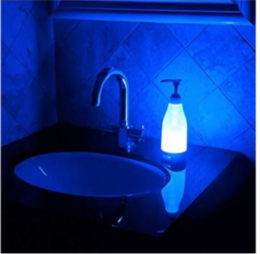 Dozator de sapun cu lumina LED Soap Brite se poate folosi pentru sapun lichid, gel dezinfectant, lotiune, detergent de vase, gel de dus etc