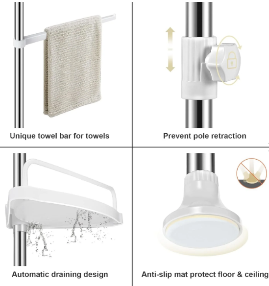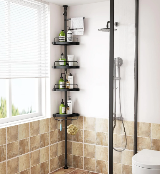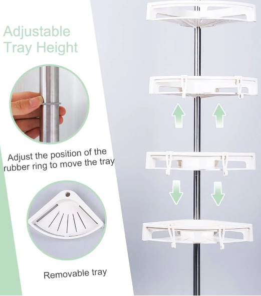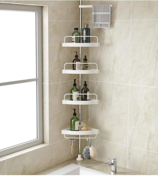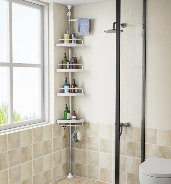 Etajera colt pentru baie Multi Corner Shelf, inaltime 100-260 cm, ideal pentru lipsa de spatiu de stocare in baie.