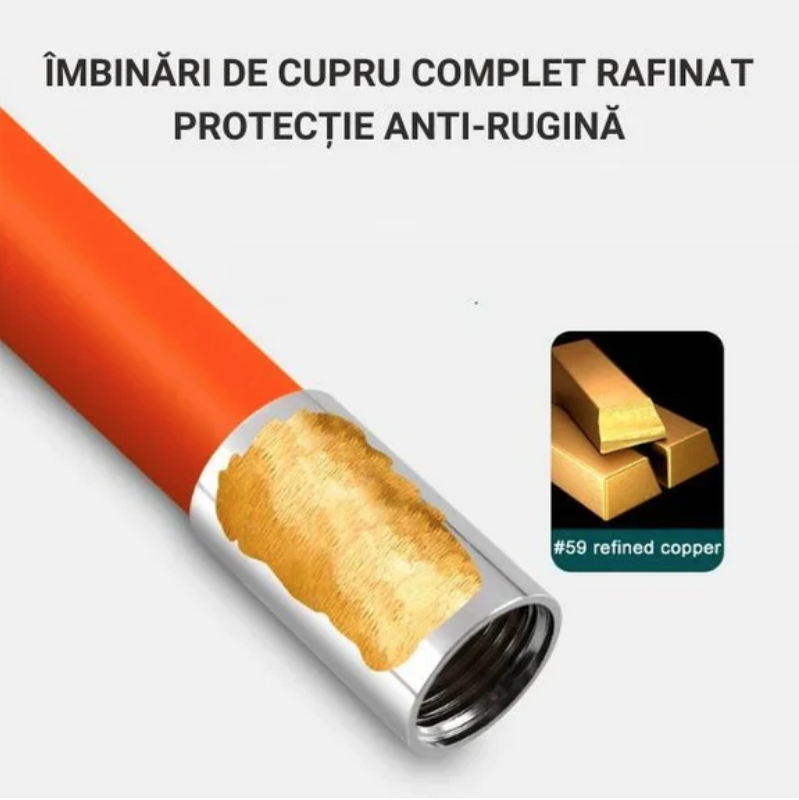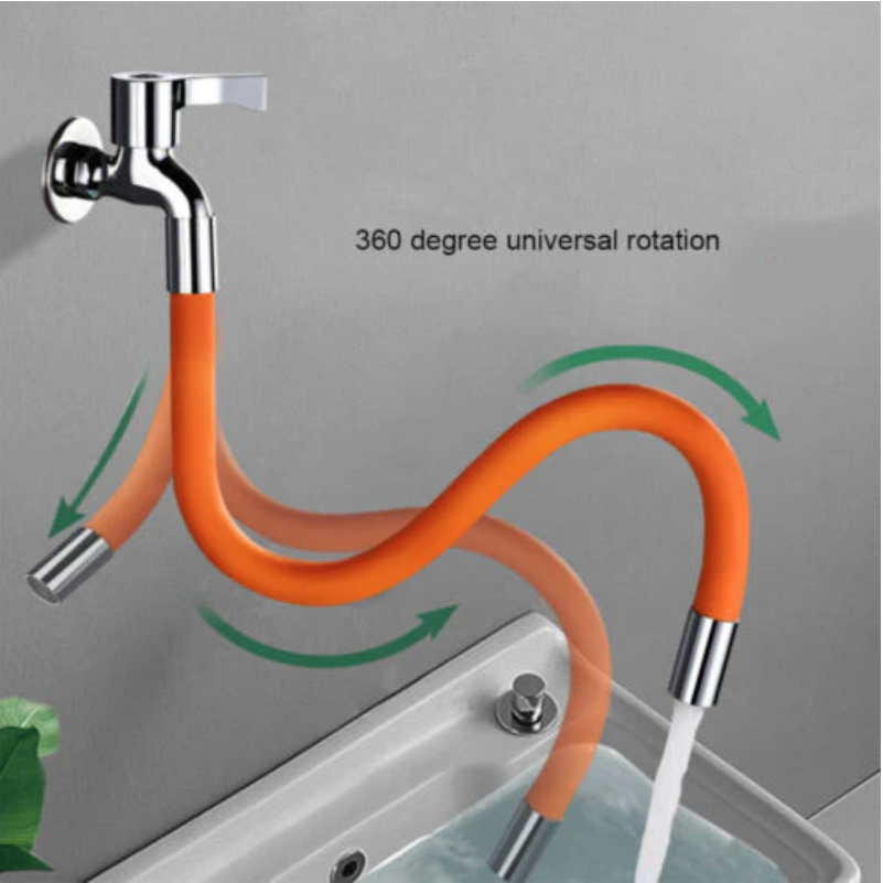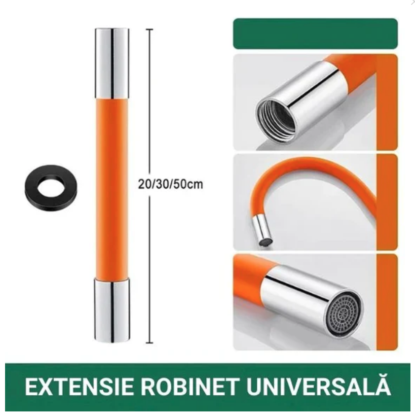 Rotire complet lexibilă : Prelungitorul flexibil de tip furtun poate fi reglat în orice direcție sau unghi doriți, facilitând curățarea în chiuvetei sau a obiectelor din jur.