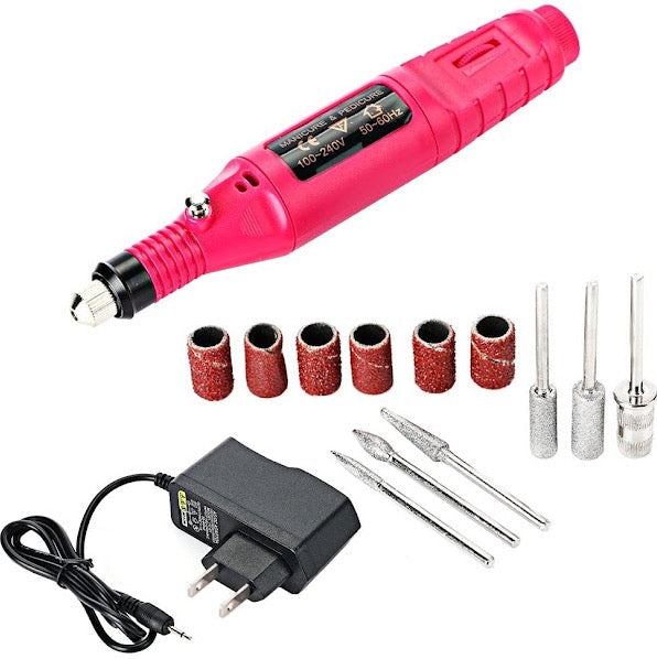 Este ideala pentru manichiura si pedichiura! Estefoarte usoara, usor de manevrat in orice pozitie, avand viteza de rotatie variabila, intre 3000 - 20.000 RPM. Este prevazuta cu mandrina metalica pentru fixarea capatului de lucru. Se livreaza cu set de 6 capete de schimb si adaptor.
