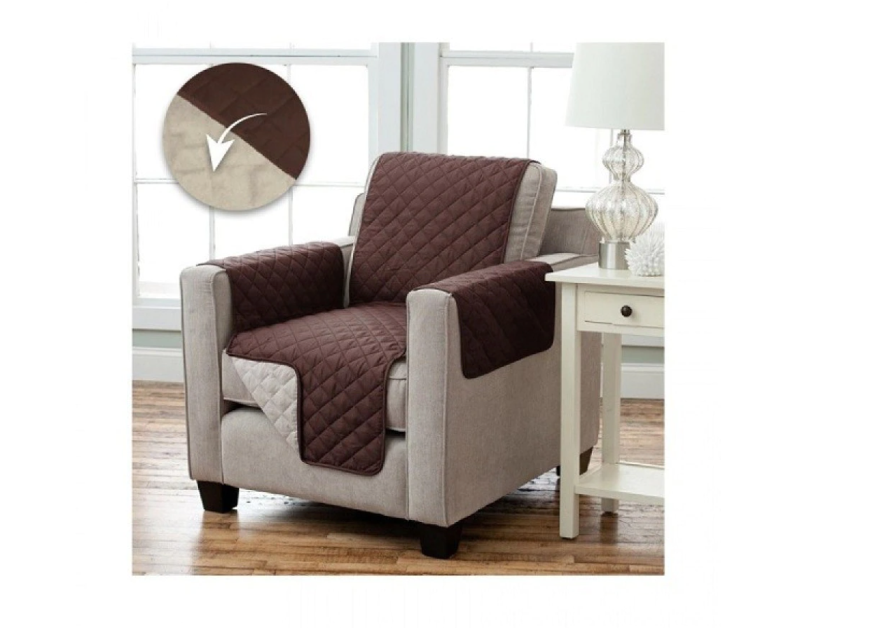 Husa de protectie pentru fotoliu, reversibila are doua fete, una bej si una maron, si are umplutura cu suprafata din polyester.