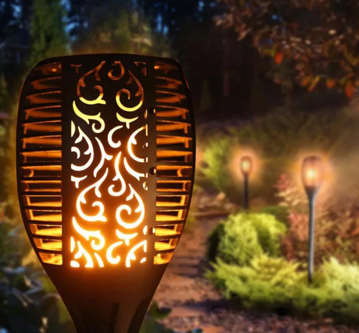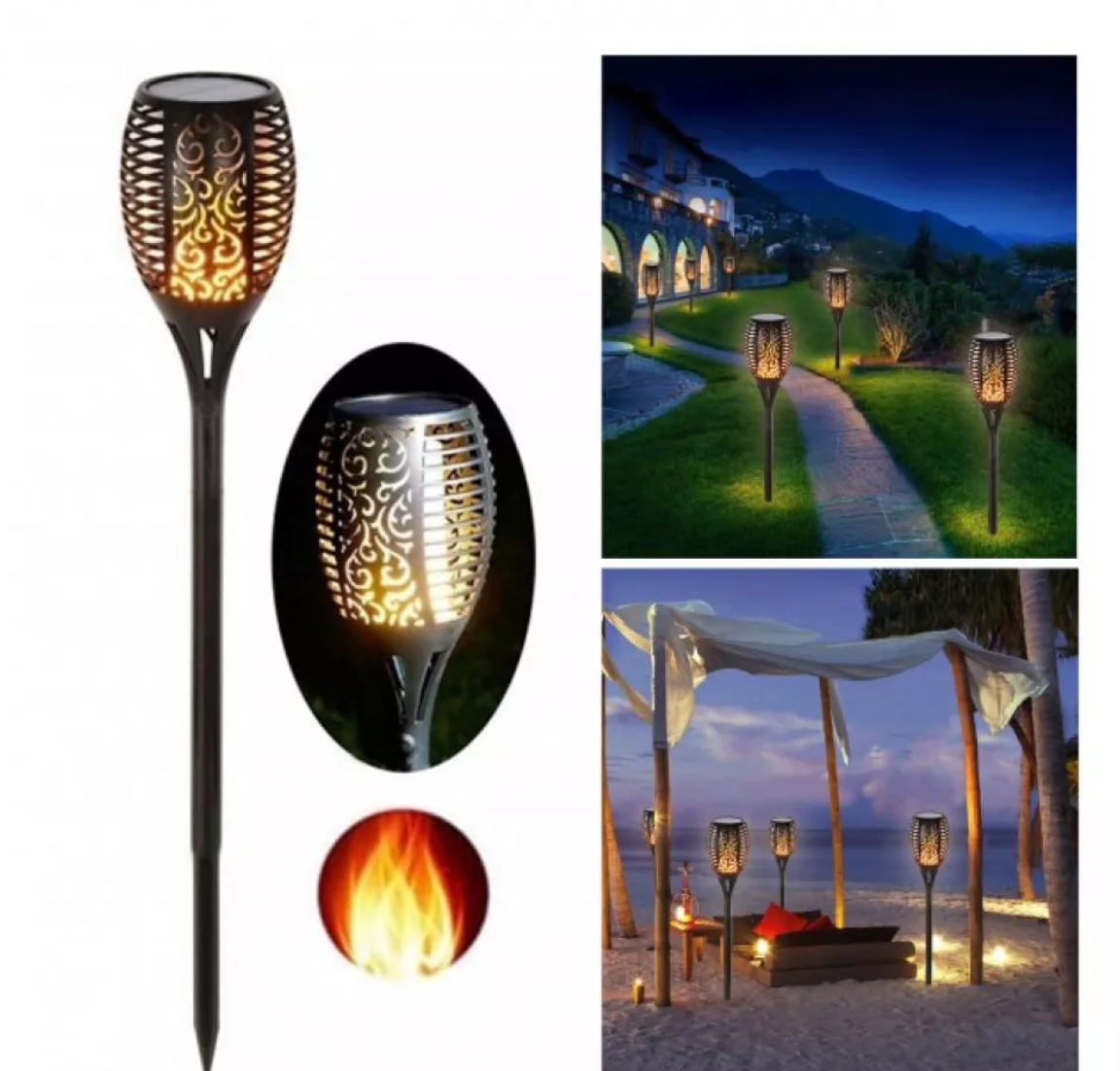 Ledurile sunt programate cu un algoritm inteligent ce le declanseaza la o diferenta de cateva ms. in perechi, astfel rezulta un efect de flacara care arde, avand lumina calda, ce imita perfect culoarea unei flacari cu fitil, real. Torta solara cu LED este prevazuta cu tarus pentru montarea in pamant. Lampa dispune de buton ON/OFF.