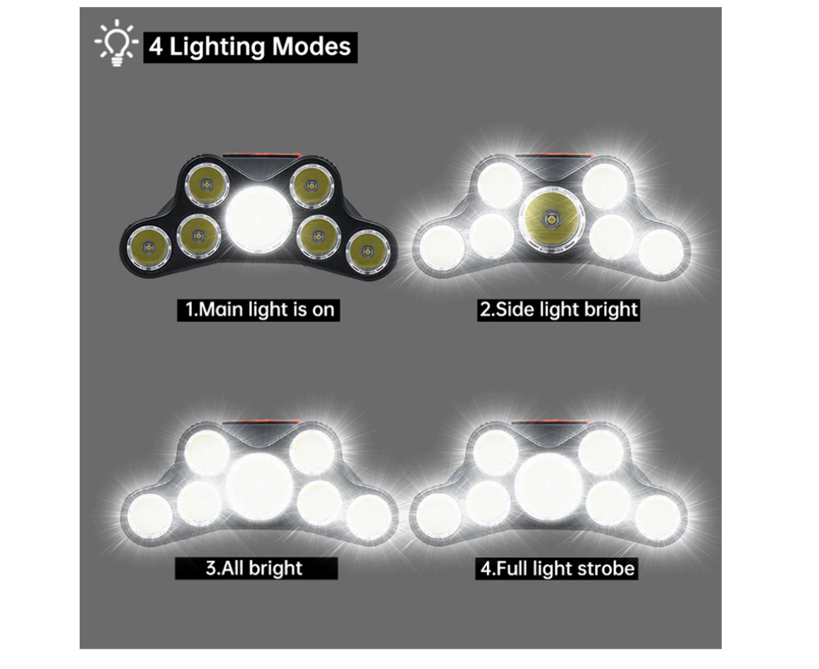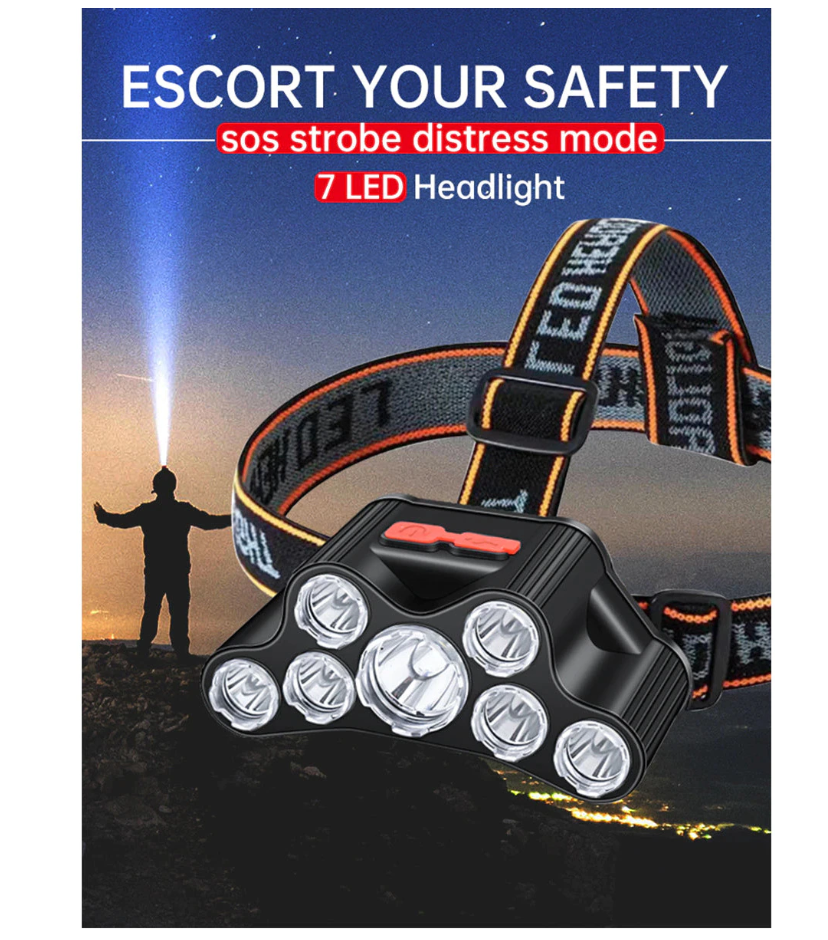 Lanterna de cap cu 7 LED-uri, 4 moduri de luminare, reincarcabila prin USB, performanta