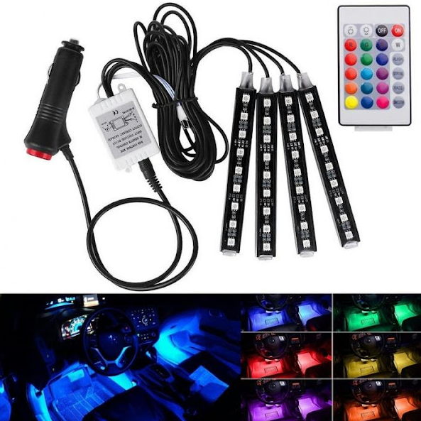 Lumini ambientale auto Kit interior LED RGB cu telecomanda