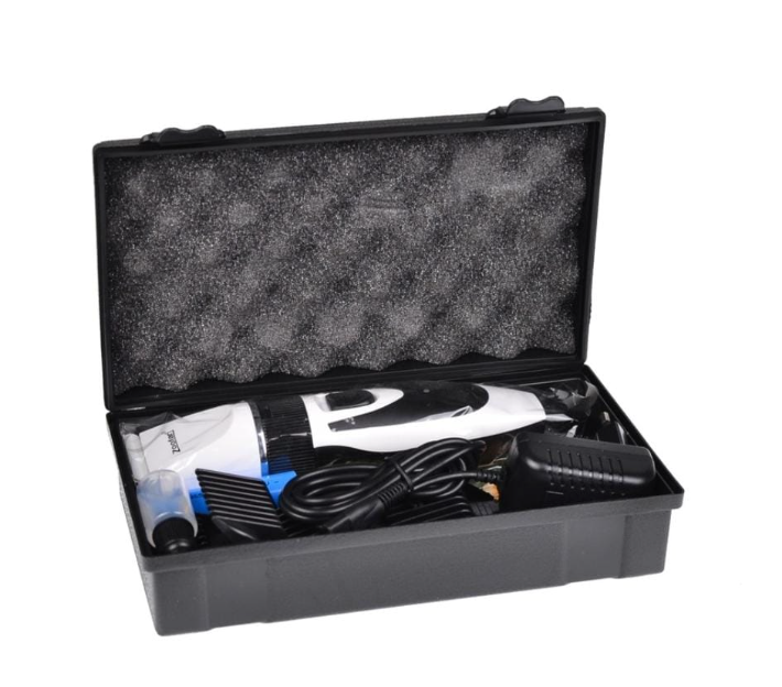 Masina de tuns animale Zoofari-DC58 CERAMIC este un instrument ideal pentru a fi utilizat de catre saloane de coafura canina si pentru animale de companie, cum ar fi caini, pisici, iepuri etc…Echipata cu lame ceramice profesionale, detasabile si ajustabile 0.8 – 2.0mm.Aceasta masina de tuns este echipata cu un motor puternic de 6500RPM, care va permite sa tundeti mai mult si mai rapid.O alta caracteristica importanta este functionarea silentioasa, astfel incat animalele nu se vor speria.Modelul Zoofari-DC58 beneficiaza o baterie reincarcabila 18650 – 2000mAh 3.7V.Masina este dotata cu 4 piepteni de ghidare (3, 6, 9 si 12 mm), astfel incat sa puteti schimba in functie de nevoile dvs. pentru a taia parul la lungimile si stilurile dorite mai precis si mai usor.Design-ul ergonomic, greutatea redusa (300g) si lipsa cablului de alimentare va permit sa utilizati masina mai usor.Masina profesionala Zoofari-DC58 este conceputa pentru a va putea tunde cu usurinta animalul de companie.Motor puternic intern de 6500RPM – Ofera o functionare continua timp de 5 oreIncarcarea se face in 3.5 ore, la priza 220V.Echipata cu un set de cutite profesionale ce pot fi detasate si curatate/spalate foarte usor, cu apa calda si sapun.Dupa fiecare tundere, se recomanda scoaterea cutitelor, spalarea si ungerea acestora. Caracteristici:Adecvat pentru taierea / tunderea si tunsul animalelor de companie;Motor puternic si durabil, cu functionare continua timp de 5 h;Lame de mare precizie si performante;4 piepteni de ghidare (3, 6, 9 & 12mm);Pentru a reduce parul la lungimile si stilurile dorite;Masina Zoofari-DC58 Carbon ofera o utilizare stabila, lina si silentioasa;Design ergonomic, greutate redusa si cablu de alimentare lung;Usor de folosit. Specificatii:Structura compacta si durabila;Motor: 6500RPM;Tensiune: 220 ~ 240V;Frecventa: 50 Hz;Ghidaj pieptene: 3, 6, 9 & 12mm;Greutate: aprox. 300 g;Timp de functionare continua 5 h;Timp de incarcare 3.5 h. Include:1 x Cutie din plastic pentru depozitare;1 x Masina pentru animale de companie;4 x pieptene de ghidare (3, 6, 9 & 12mm);1 x perie de curatare;1 x lubrifiant lichid