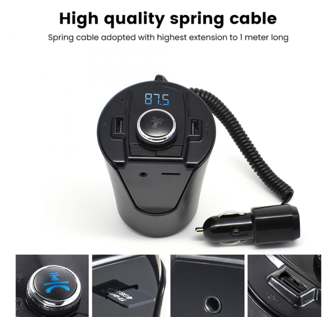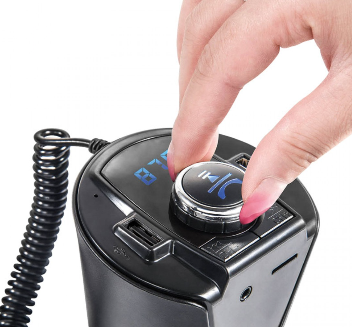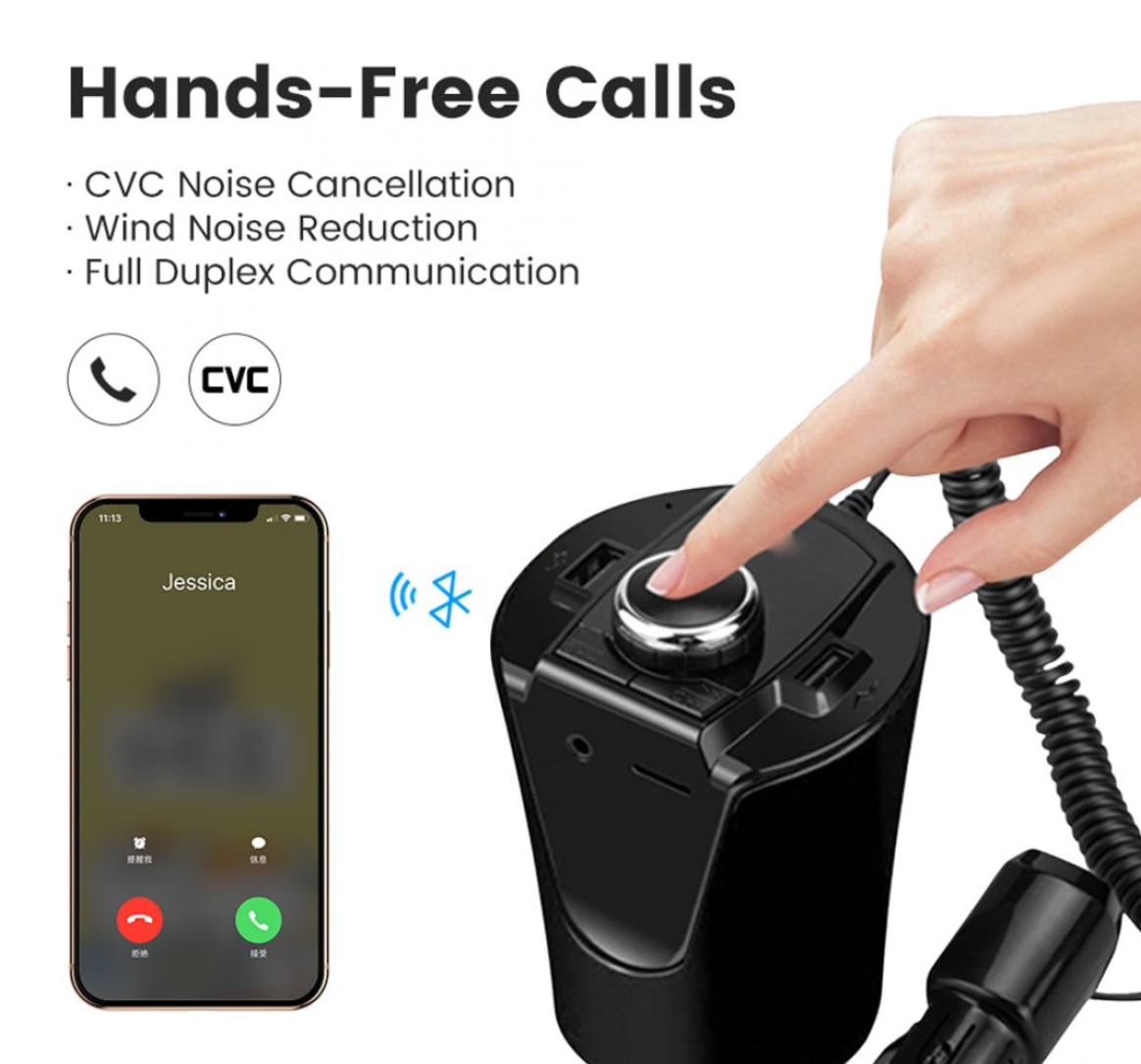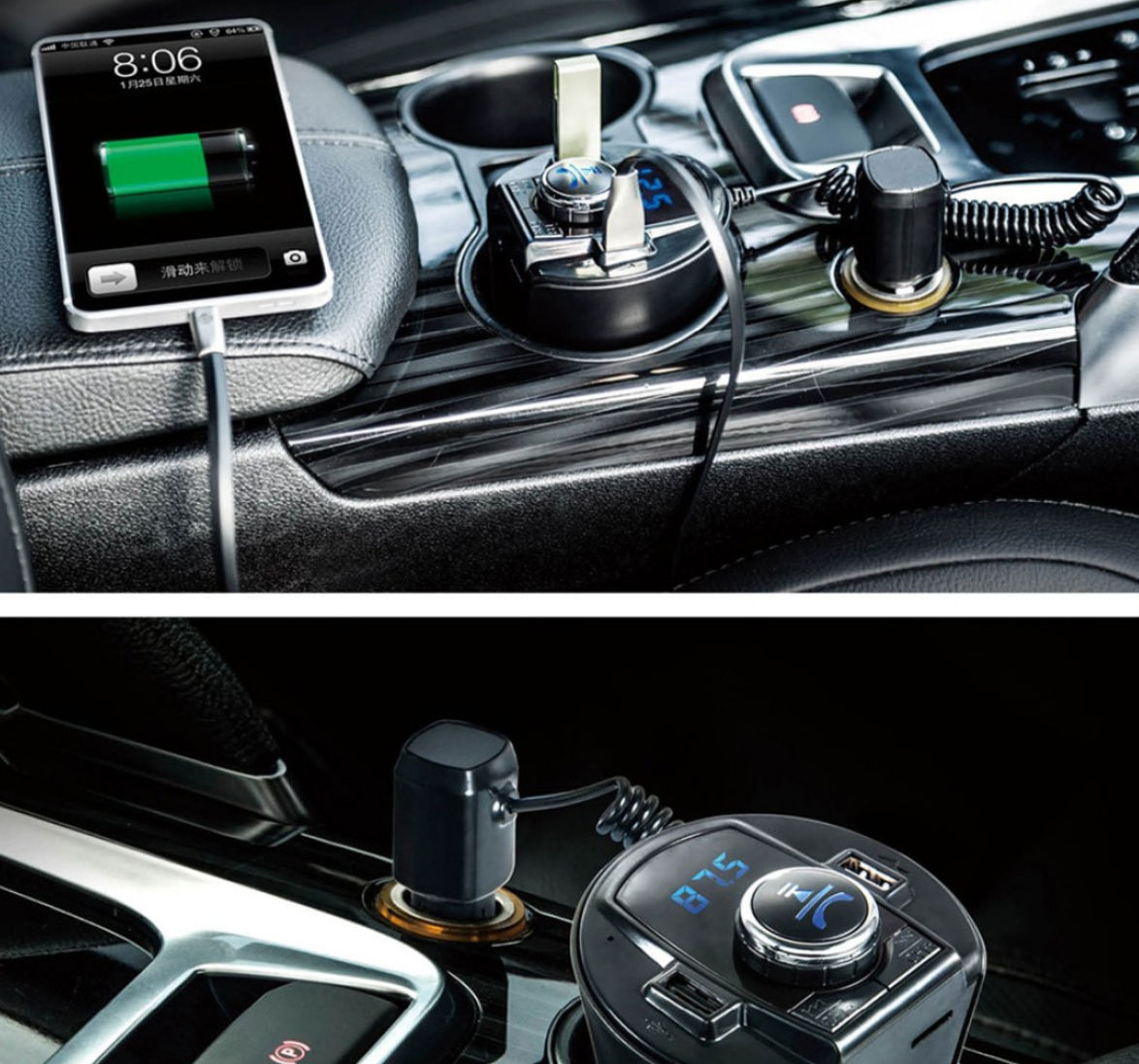 Modulator FM Bluetooth pentru Masina MCS Car-Cup este un Car Kit compatibil cu iPhone, Samsung si majoritatea telefoanelor inteligente. Modulatorul are player MP3 care permite ascultarea melodiilor preferate direct de pe un card microSD. Are si functie de incarcator de masina (2 porturi) si slot Micro SD.