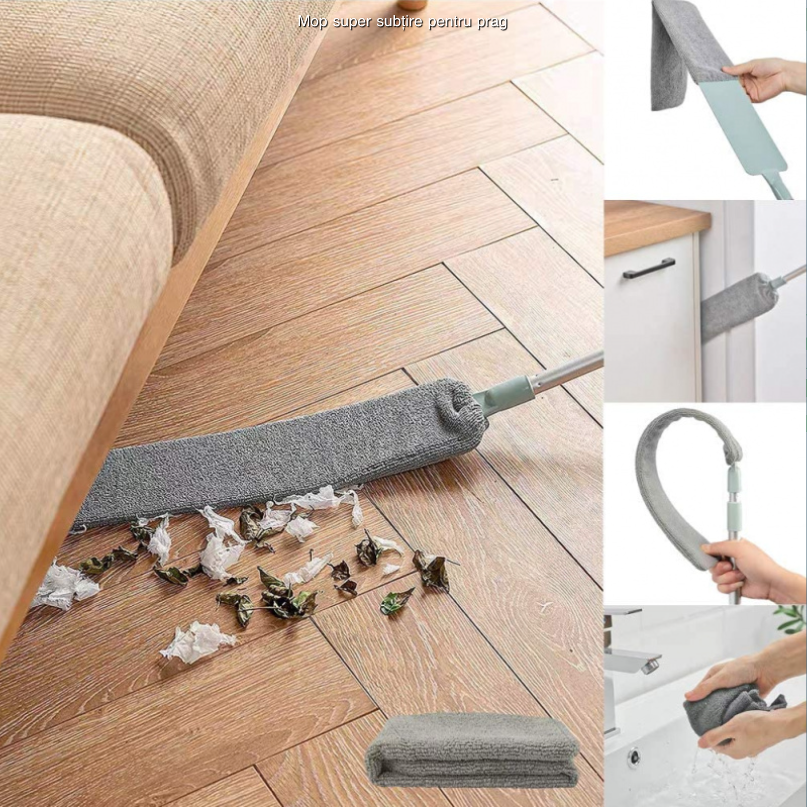 Cu acest mop va fi o placere sa faci curatenie! Este foarte ușor, subtire si datorita fibrei fine prinde o cantitate mare de praf si murdarie. Cu el puteți curăța cu ușurință chiar și locurile greu accesibile, cum ar fi spațiul de sub canapea, pat, frigider, în spatele mașinii de spălat și a altor aparate. Tot ce trebuie să faci este să-l speli sub apă caldă și să-l lași să se usuce.