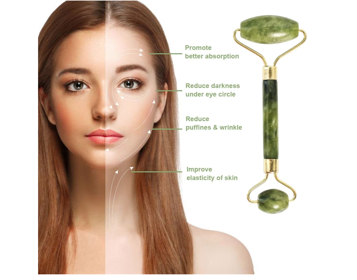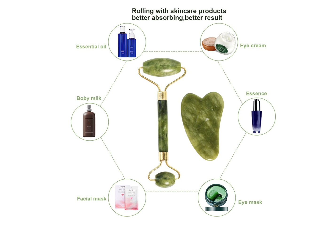 Rola de Jad natural, Pentru masaj facial si corporal, Verde