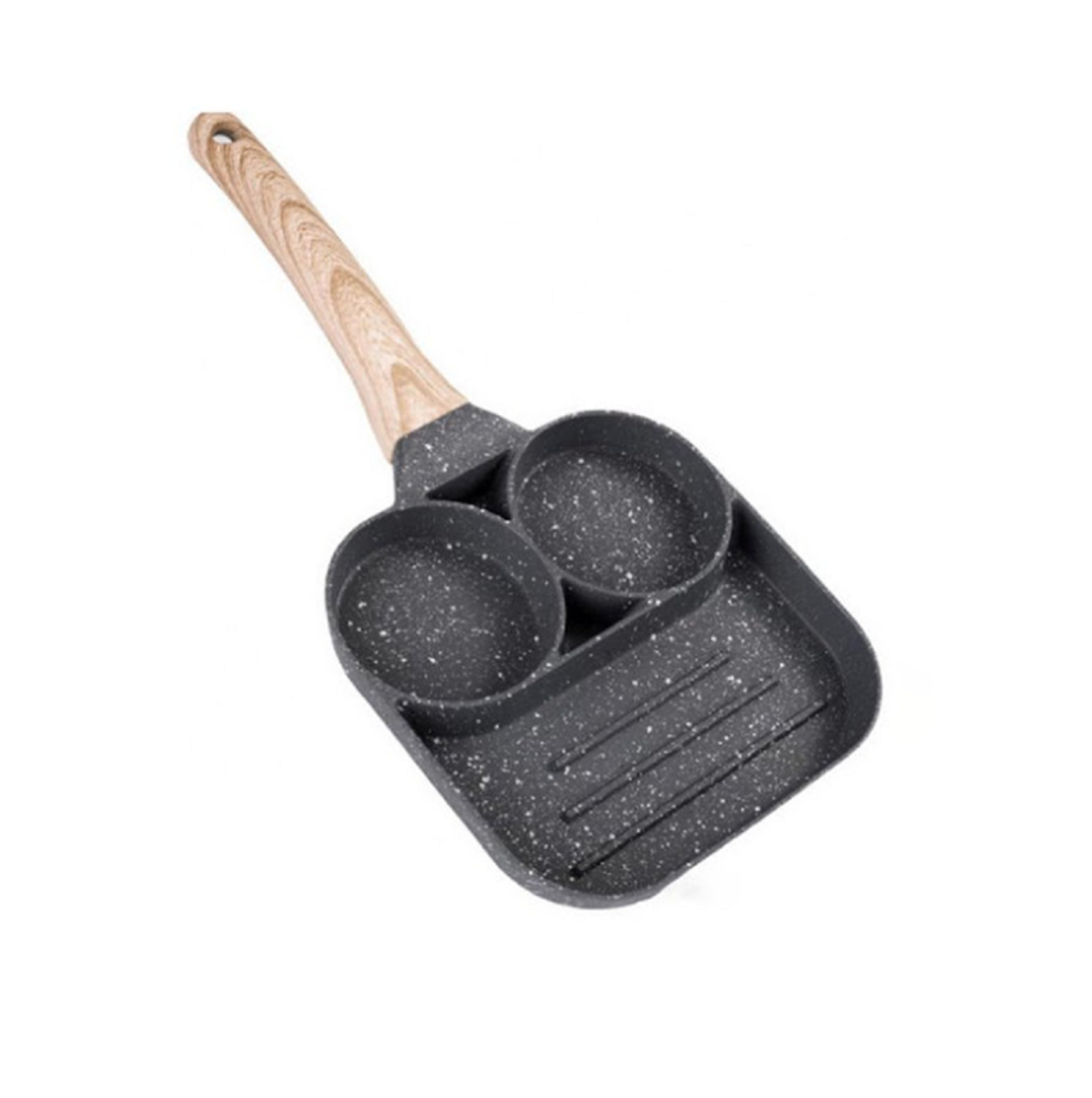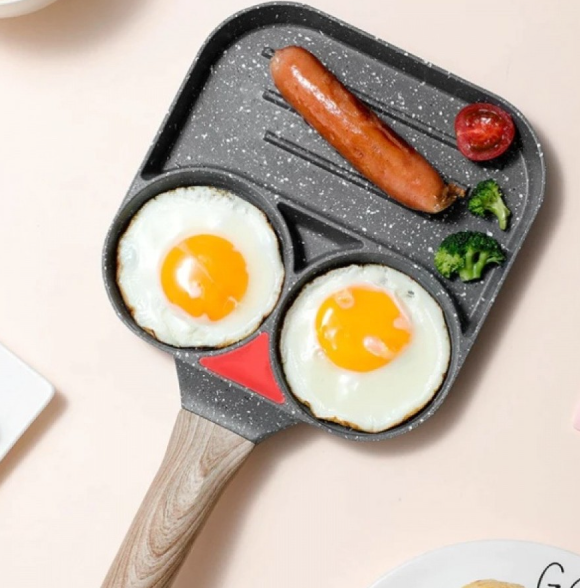 Cu tigaia cu trei compartimente poti satisface patru gusturi diferite. Pregateste pentru copiii tai clatite dragute si oua prajite de dimensiuni egale. Poti face chiar si mancaruri vegetariene sau din carne in aceeasi tigaie fara ca acestea sa se atinga.