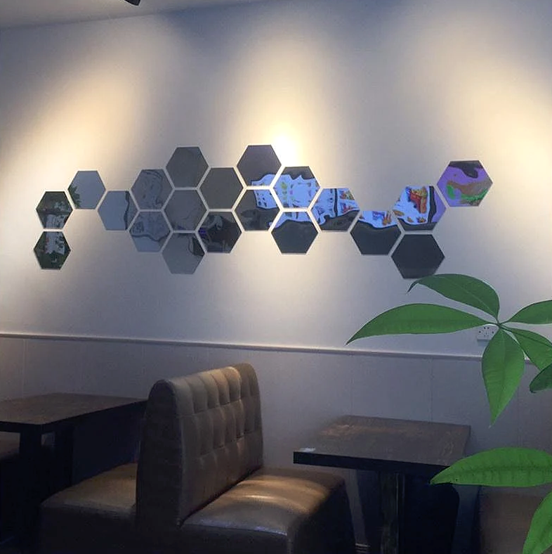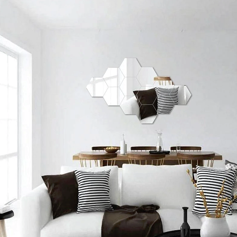 Oglinda Design Hexagon Silver - Oglinzi Decorative Acrilice - Diagonala 14cm - SET 11 bucati