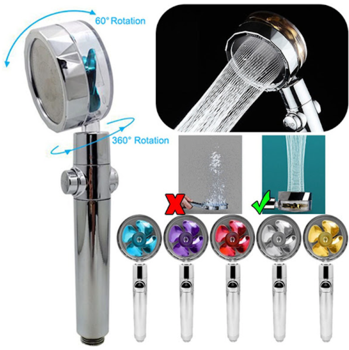 Rotire 360 grade: Capul este flexibil si poate fi rotit 360 grade in pozitia perfecta in functie de nevoile personale. Asta iti ofera posibilitatea de a face dus fara sa tii para in mana.
