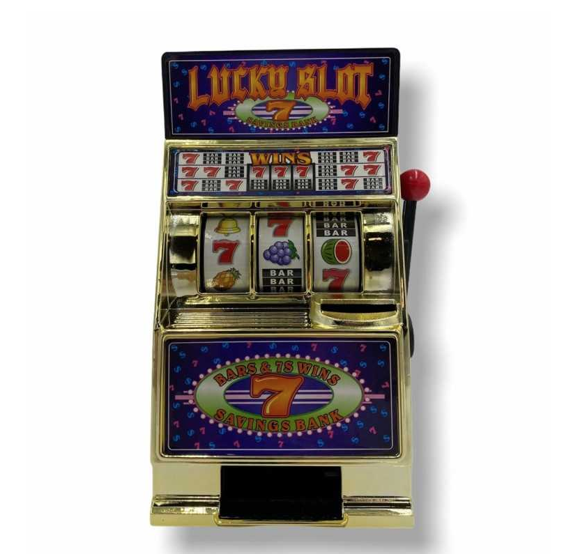 Pusculita Slot Machine - Casino Slot cel mai distractiv mod de a recupera banii din pusculita. Slot machine este copia jocului real transformat in pusculita! Este o pusculita in care inserati monedele si trageti de maneta. Trebuie sa jucati tragand maneta pana cand castigati sa va recuperati economiile. Puteti recupera fisele si manual.
