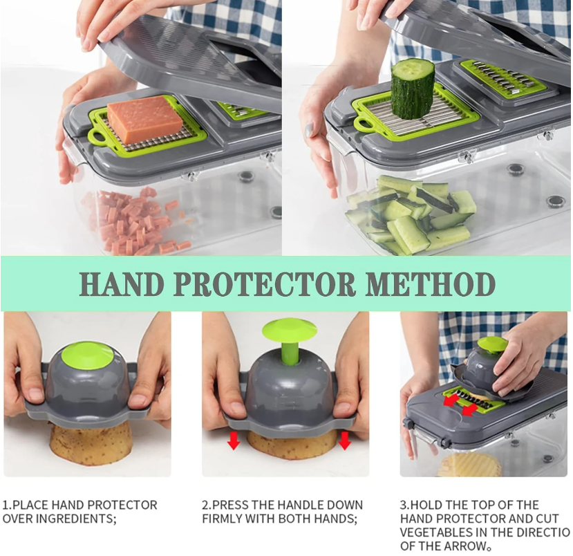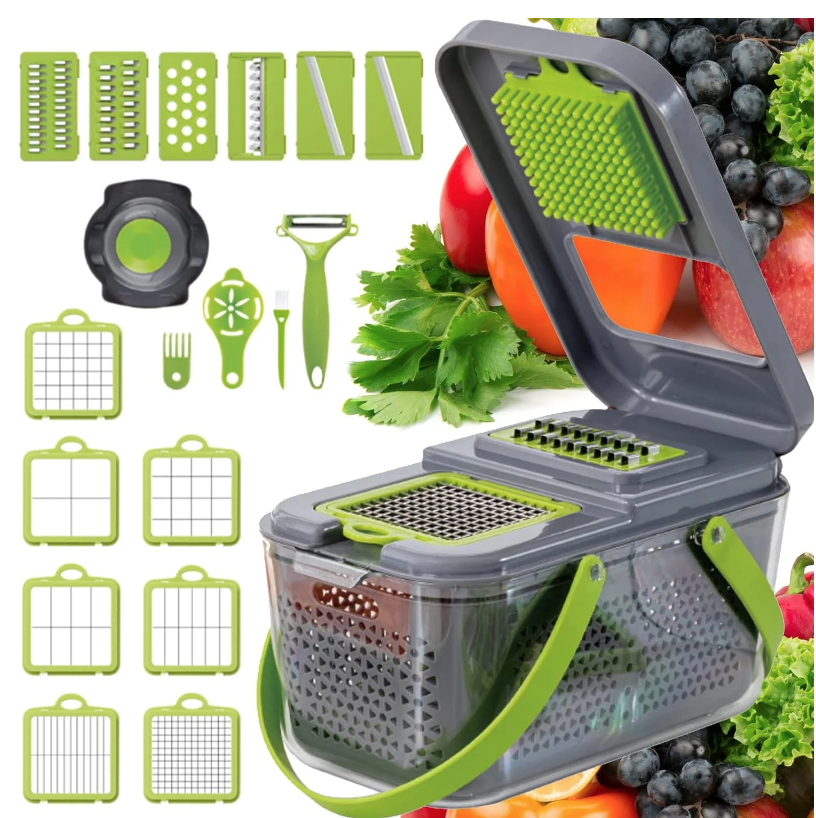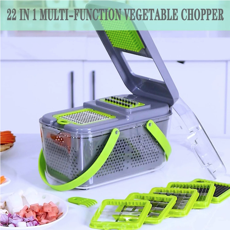 **Razatoare multifunctionala pentru fructe si legume, 22 piese, lame din otel inoxidabil
