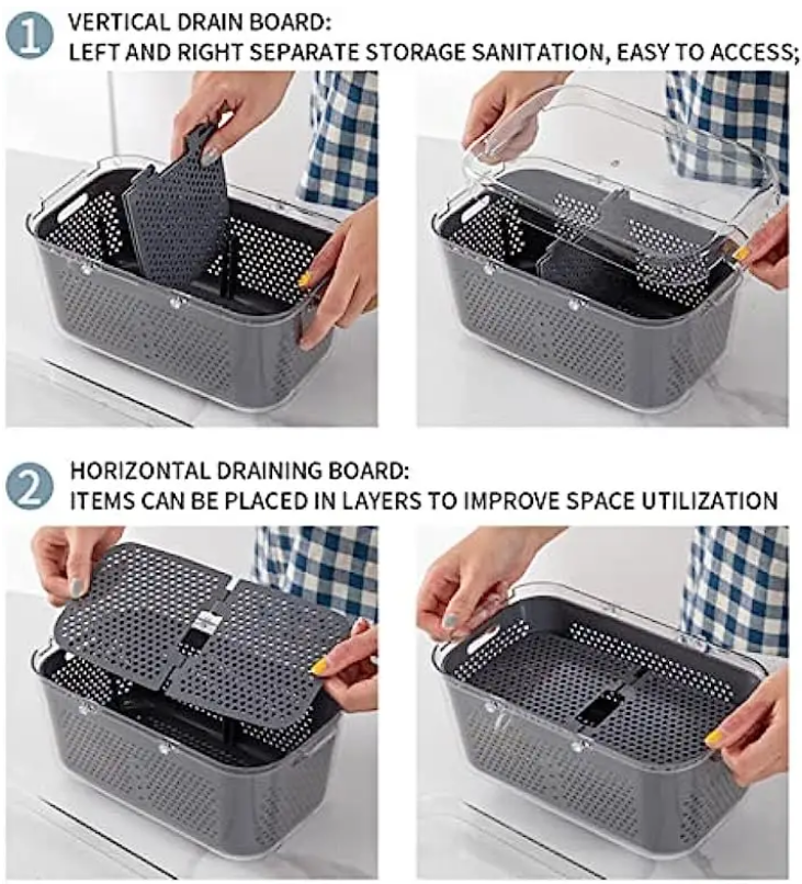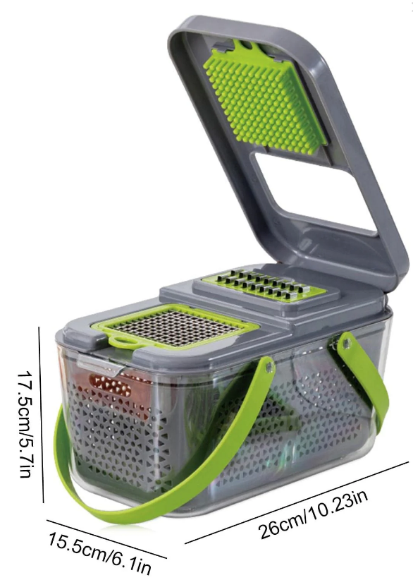 DESIGN INOVATOR: Tocatorul de legume vine cu un cos de strecurat si un recipient, cosul de strecurat este plasat vertical pentru acces usor si depozitare igienica. Cand este plasat orizontal, alimentele pot fi asezate în straturi pentru a îmbunatați spațiul, iar recipientul poate stoca legume si fructe în exces.
