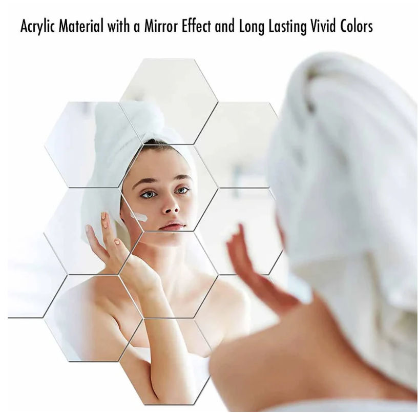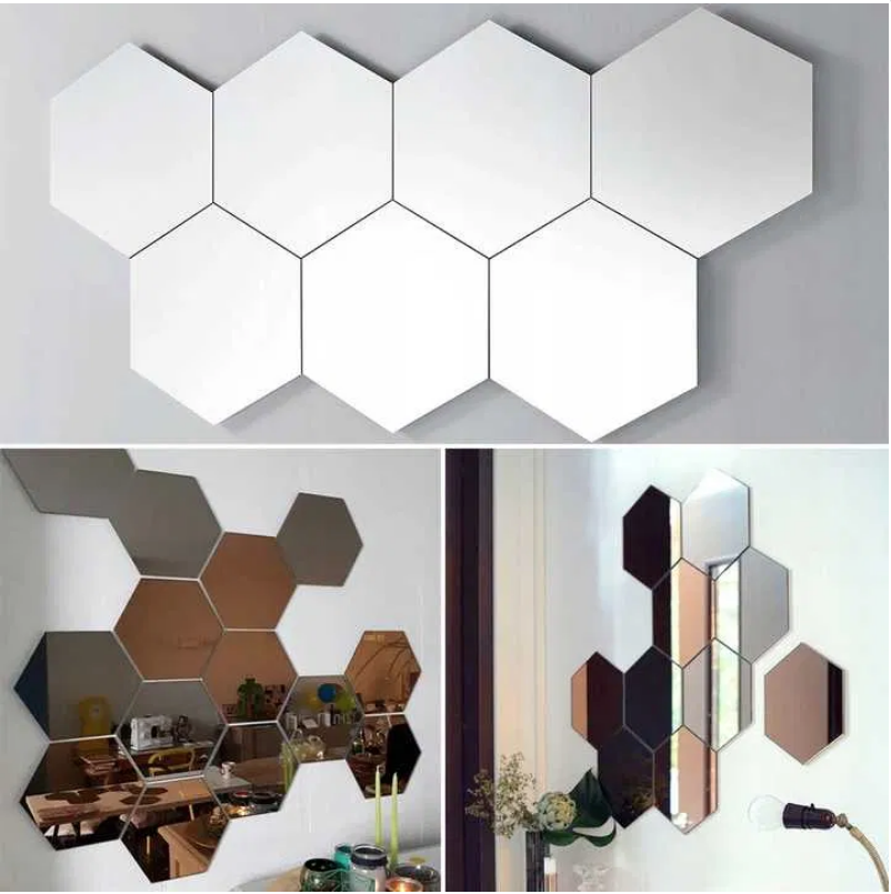 Setul contine 12 bucati de sticla acrilica in forma de Hexagon. Oglinda are o folie care o va proteja de zgarieturi si de deteriorari.