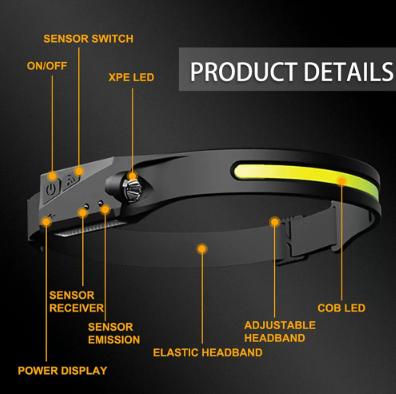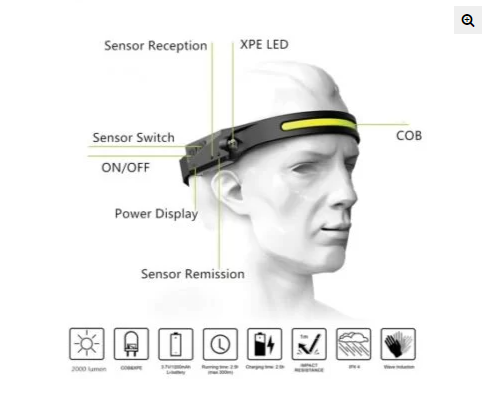 Set 2 Lanterne de cap cu banda led, Led puternic si Senzor de miscare