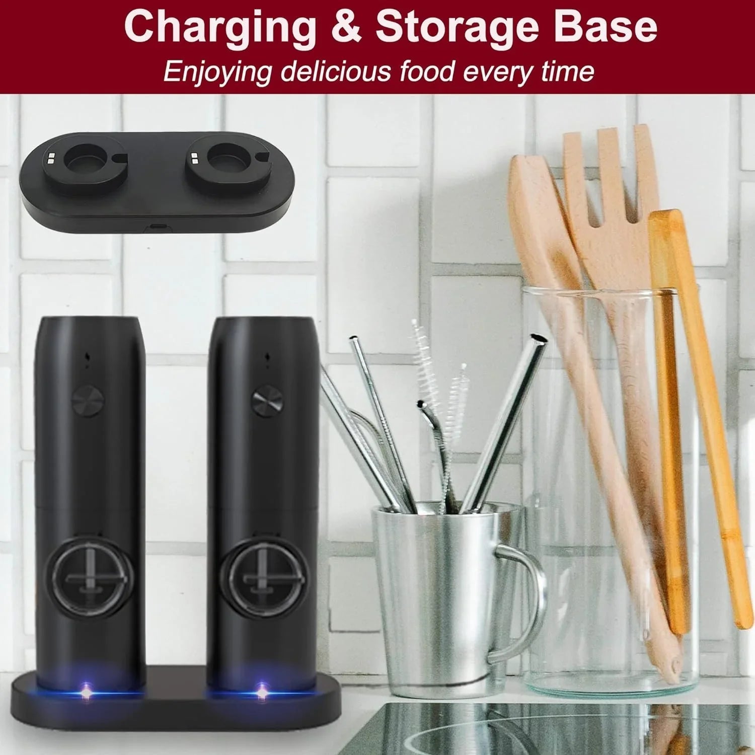 Râsnita electrica are un design unic pentru baza de încarcare: Baza de încarcare tip-C. Poate fi folosita pentru a stoca 2 râsnite de piper si sare, care pot fi încarcate si stocate si plasate împreuna cu alte ustensile de bucatarie.