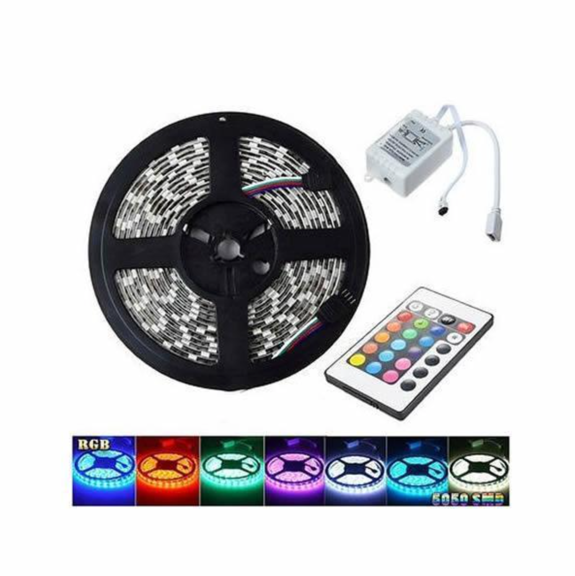 Banda LED 12 V cu controler si telecomanda wireless, utila pentru efectele sale speciale in iluminarea spatiilor interioare, dar si acvarii, pentru cei pasionati de tuning auto sau la realizarea de firme si casete luminoase. Cele 300 de led-uri multicolore asigura o lumina puternica, cu consum energetic redus si durata de viata mare (50.000 de ore).