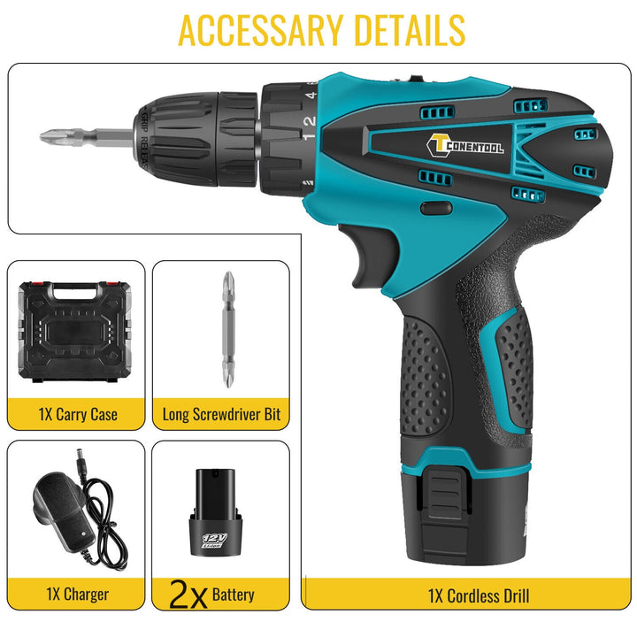 - Acumulatori și Încărcător Inclus: Nu va trebui să vă faceți griji cu privire la alimentare. Cu doi acumulatori și un încărcător rapid inclus, puteți fi sigur că bormașina va fi gata de utilizare oricând.