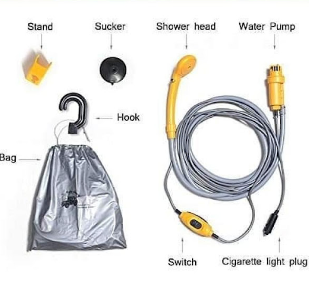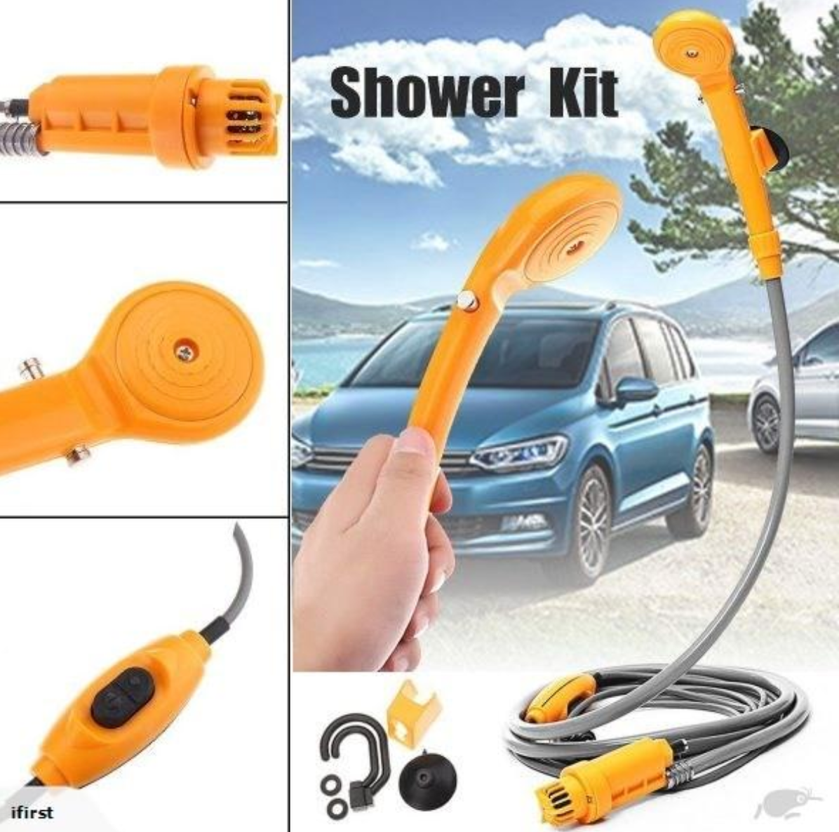 Set dus auto portabil pentru camping, 12 V, cablu 5M