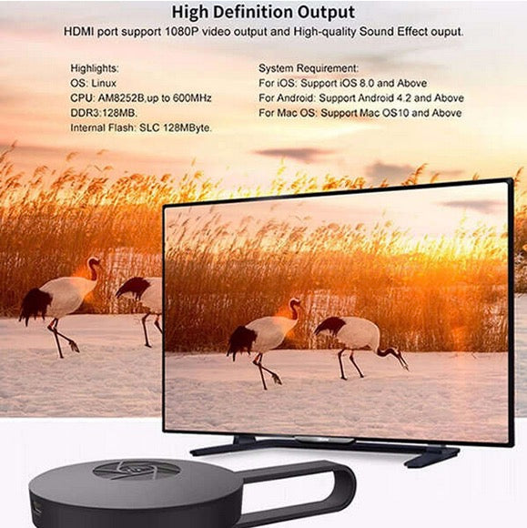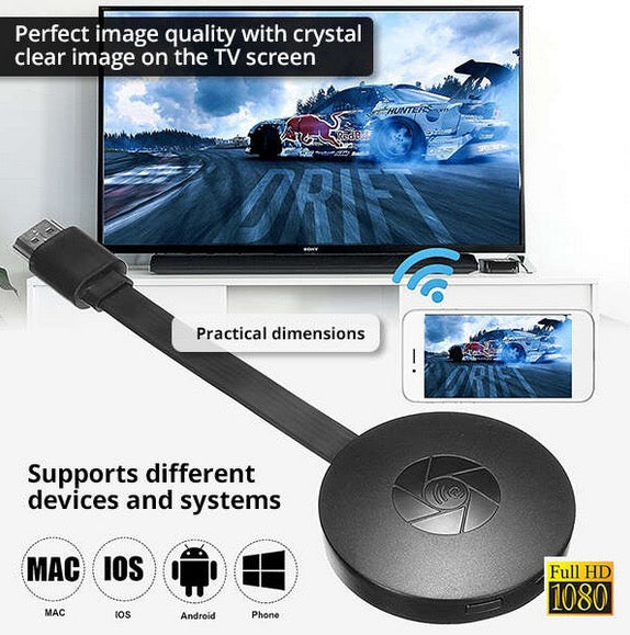 Atașați adaptorul la televizor sau proiector și conectați-l la telefon sau tabletă în câteva secunde prin Wi-Fi. Este compatibil cu diferite telefoane și sisteme și nu trebuie să instalați aplicații suplimentare. 📲💻