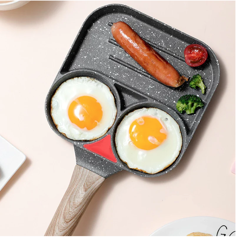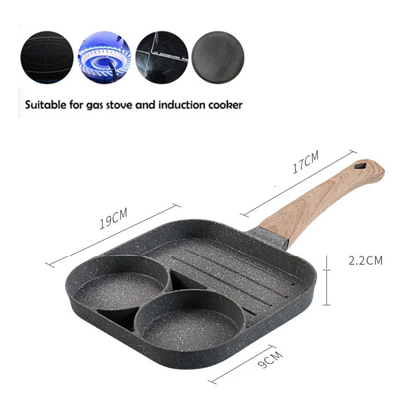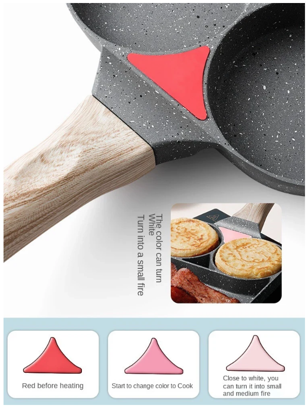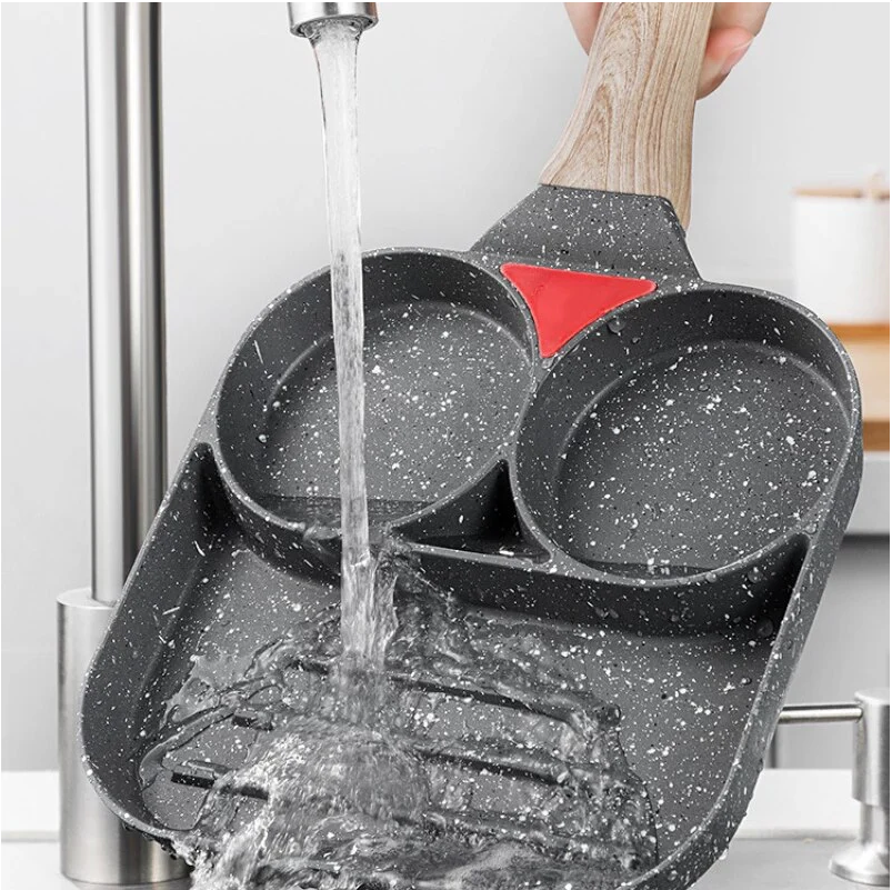 Cu tigaia cu trei compartimente poti satisface patru gusturi diferite. Pregateste pentru copiii tai clatite dragute si oua prajite de dimensiuni egale. Poti face chiar si mancaruri vegetariene sau din carne in aceeasi tigaie fara ca acestea sa se atinga.