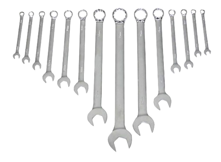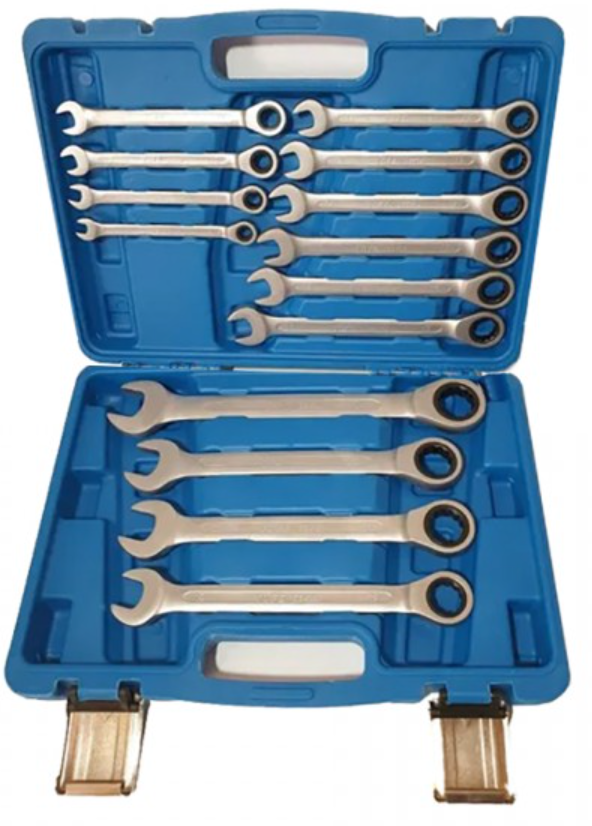 Trusa detine 14 chei combinate, un capat fix, iar celalalt inelar, ideale pentru bolturi, suruburi si piulite hexagonale. Piesele vin prezentate intr-o trusa din plastic, ceea ce le face usor de depozitat si de pastrat intr-o maniera ordonata. Cheile sunt confectionate din crom-vanadiu si placate fin cu crom pentru prevenirea ruginei.
